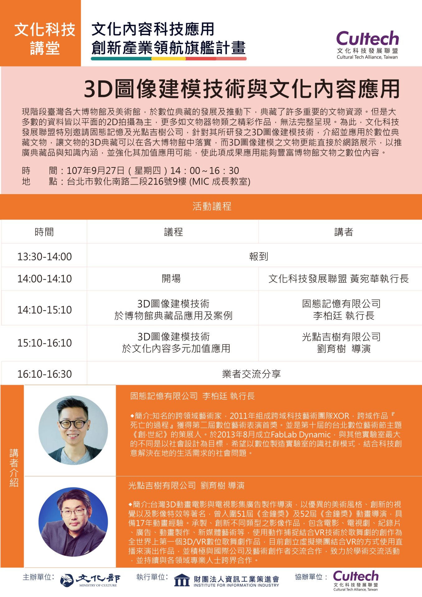 【「文化科技講堂」-3D圖像建模技術與文化內容應用】