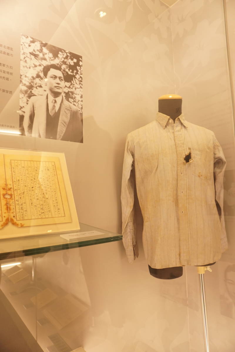The meandering exhibition on the second floor of Taipei 228 memorial museum displays several elite victims based on different groups and professionals divided into 8 categories including 228 Incident Settlement Committee, Three Principles of the People Youth League, Political Construction Association of Taiwan Province, elected representatives, the press, the law, the academic and the medical. Through the objects and words, it seems that we had known them and summon the deceased to show their death in front of the viewers. Take Wang Tian-Deng for example, we can speculate his reading habits and background through his business cards, stopwatch, Chinese classic books like Four Books and Zuo Zhuan etc. and even imagine his meticulous personality while speaking from the stopwatch he usually brought with. Besides, by viewing Lu Bing-Qin’s belonging of the clothes after shooting, cash and suicide note in the pocket, we read the blood of the 228 incident and the heavy grief when saying farewell with his wife.