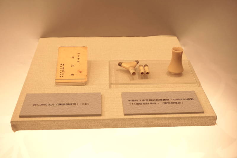 228事件的受難者群體形象,亦可由人格面具此一概念解釋。受難者的物件,傳遞出特定訊息,讓觀者透過此側面想像亡者的人格特徵;又透過相片隱喻面具,使得受難者的肖像與展示物深刻地連結起來。博物館利用展示,裱框受難者的特定人格,藉此建構敘事;換言之,這些展示物件是被博物館挑選過的物件,用來展示受難者的專業形象(例如王育霖的檢察官服(圖3)、陳澄波的繪畫用具、施江南的聽診器零件(圖4));或是作為還原死亡場景的歷史見證物(好比郭守義的遺書、吳鴻麒慘死的遺像、盧鈵欽破洞的衣物等等)。受難者在博物館所呈現的物件、面具,是博物館意圖塑造的人格聯想:莊嚴、體面,卻無辜枉死,因而散落在這主要敘事中的日常物件,比如結婚照、勳章、手錶、印章⋯⋯,就像是為了搬演受難者的特殊性,而穿插其中的道具。總言之,藉由如同面具般的象徵性物件,博物館如同為受難者安裝魁儡線,使觀者藉由人格面具的聯想,揣摩受難情境。這種對於不同個體平板的角色塑造,其實正顯露死亡所造成的去個性化衝擊—死者再也沒有發語權,他們一同沉默、一同被展示,個體之間沒有差別,無法詮釋自身的人格特質,死亡與存有共同終結。