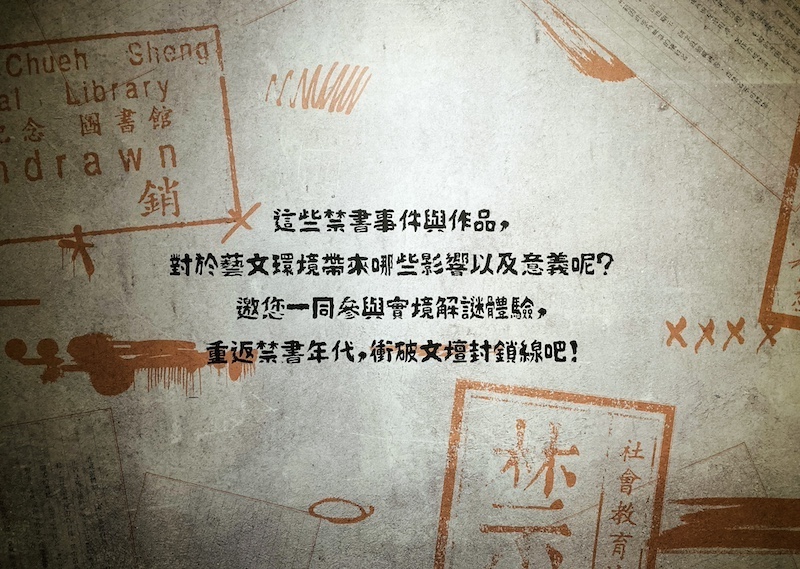 國內博物館近來經常結合館內展覽,規劃實境解謎遊戲,然而,展覽如何透過遊戲引領觀眾身歷其境,投入展覽的世界中呢?國立臺灣文學館「文壇封鎖中——臺灣文學禁書展」結合實境解謎遊戲,嘗試引領觀眾認識臺灣曾施行的書籍查禁制度,以及人們在數十年來歷經的思想與言論管制。此特展分為5個單元,不僅展出館藏的重要文學作品,展覽將威權時代的禁書議題轉化為遊戲謎題內涵,促使觀眾依循展覽脈絡,一探威權時代下字句間的肅殺之氣。