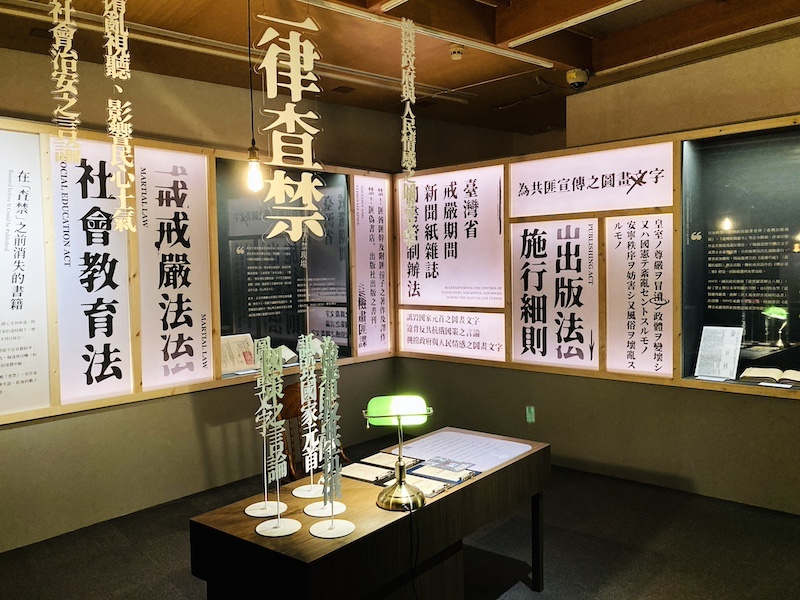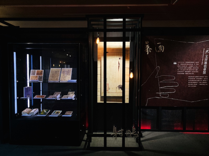 在不同政府的威權下,不僅是官方語言的限制,「書寫的形式,政府來定義」單元呈現了當時文學形式與歌曲內容處處掣肘的情況,像是受壓抑的臺灣方言及白話字〔註1〕,及在「暴雨專案」〔註2〕中成為禁書的武俠小說,也有許多歌曲曾因各種緣由而遭查禁。此單元設有3座監牢,各有一份控訴言論箝制的自白,觀眾需尋覓被塗掉的關鍵字以獲得密碼,藉此同時瞭解當時的各種查禁緣由。