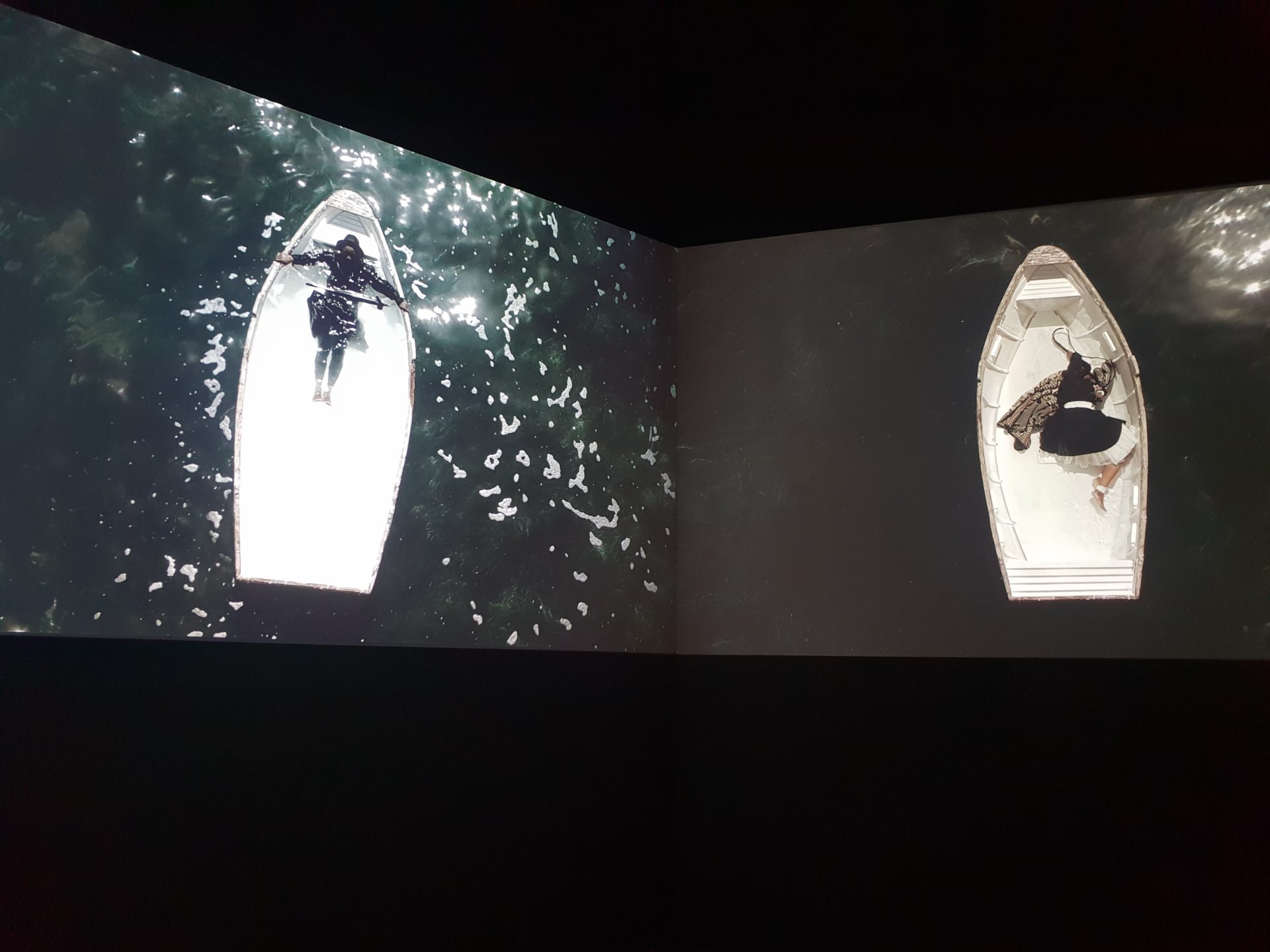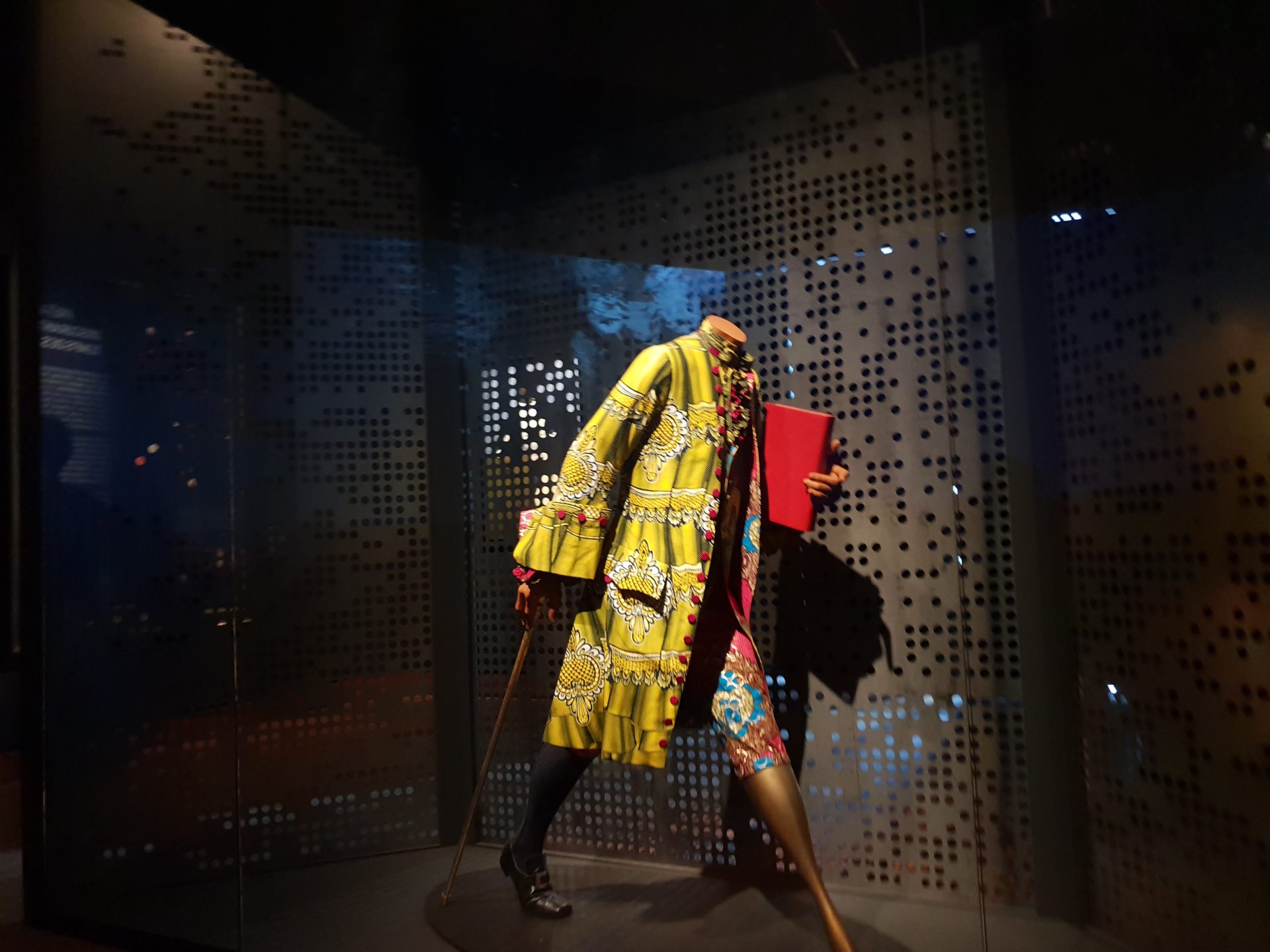 除了反思非洲雕塑於博物館展示脈絡下的定位之外,蒙特婁美術館進一步將當代非裔藝術家作品置於展覽空間與論述的核心,企圖翻轉歐洲中心主義的藝術史觀點,並挑戰許多對於非洲藝術的錯誤觀點,包括認為非洲藝術是原始的、沒有歷史或沒有演進(evolution)的。〈從非洲到美洲〉展覽一開始即以幾位傑出的非裔藝術家作品,構成〈序曲:啟蒙時代的蒙昧主義〉,如Mohau Modisakeng詩意般的錄像藝術作品〈中途〉(Passage),以兩男一女於小船上掙扎、沈溺之影片,哀弔於奴隸販運中失去國家、認同與生命的非洲人 (圖2);而Yinka Shonibare MBE的雕塑作品,則以沒有頭但擁有義肢、拄著拐杖的雕塑來呈現啟蒙大師伏爾泰(圖3),諷刺歐洲啟蒙精神的殘缺不全與缺乏道德良知,在追求啟蒙的同時,卻將非洲大陸進行分割與殖民。
