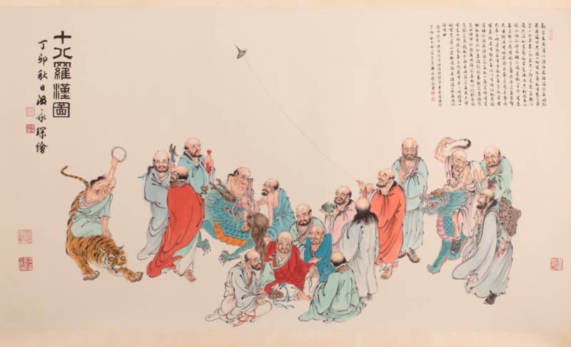 展出作品多為書畫、篆刻,亦有不少的陶藝品,而佛教經典及佛教藝術又佔多數。不僅有〈法界源流圖〉、〈五百羅漢圖〉及佛教經句等書畫、篆刻作品,甚至著名的貝葉經,都為展覽增添不少光彩。