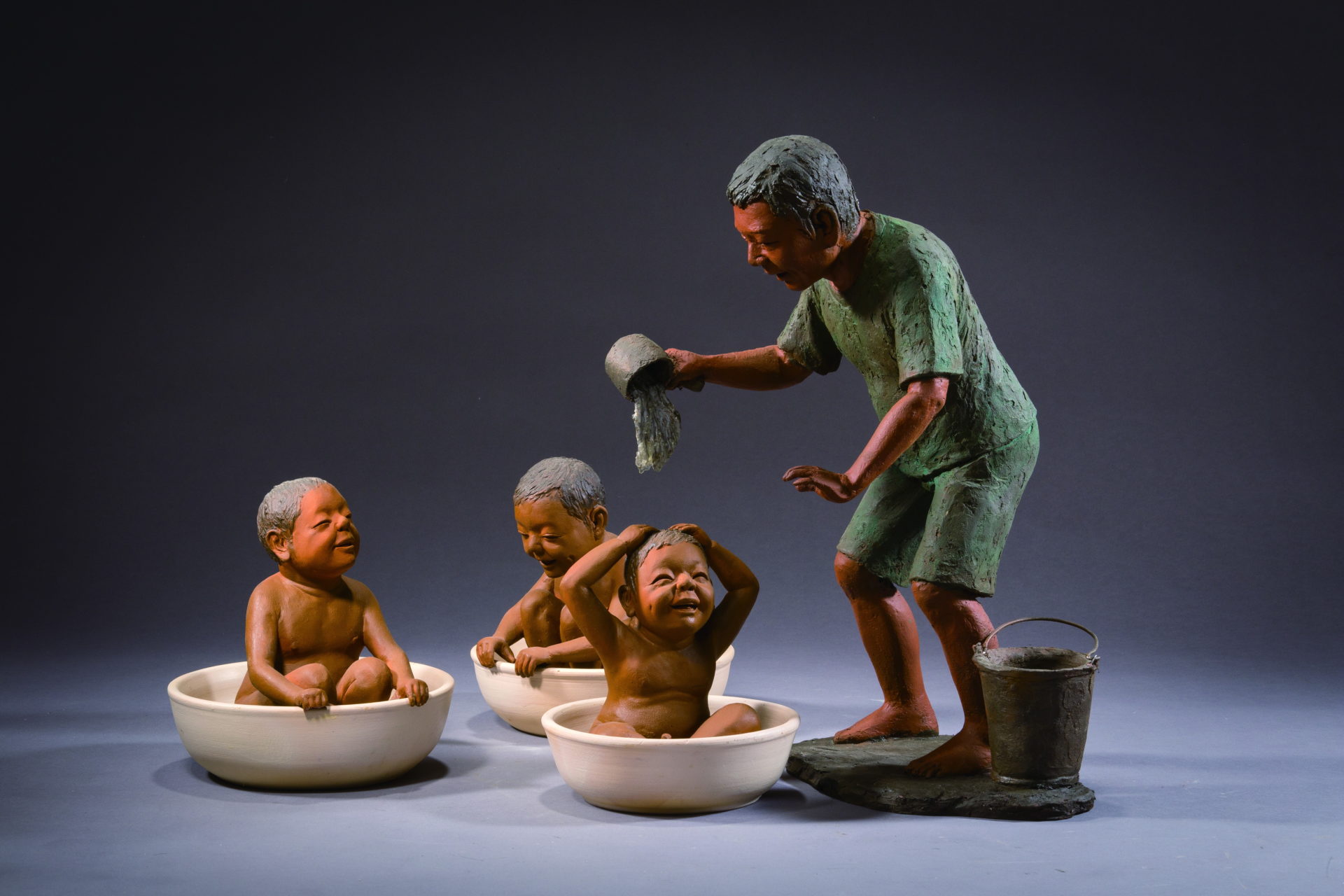 生活即藝術,藝術即生活。雕塑人生,林坤銘老師,以雕塑藝術詮釋人生百態,藉由作品來闡述文化的傳承,「寫形易,寫意難」,林坤銘老師以放空心胸,不眷戀過往,作品中的「觀自在」、「虛空妙有」、「皆空」、「閒空」就是佛家說的「放下」、「觀心」,觀察萬法本體,心眼所看到的「形相」,便是創作的「意象」,這個「意象」同外界事物的關係是不離於物,不即於物,而達到「以心為師,妙造自然」的境界。