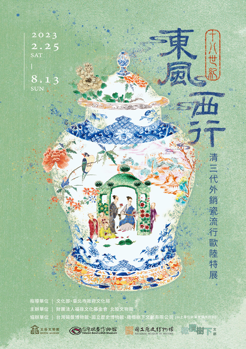 台灣首次以清代康、雍、乾盛世外銷歐洲瓷器為主題的特展,即日起至8月13日在台北市北投百年古蹟博物館—北投文物館盛大推出。清三代外銷瓷長久以來在亞洲被忽視,其研究亦非常少。此次「東風西行—十八世紀清三代外銷瓷流行歐陸」特展,北投文物館與國立歷史博物館、台灣碗盤博物館、橄欖樹下文創有限公司及多位收藏家合作,為完整呈現近年來漸被亞洲國家重視的外銷瓷文物,特別匯集百餘件來自歐洲與台灣收藏家以及博物館的收藏,系統地展出難得一見的外銷歐洲的青花瓷和彩瓷珍品。