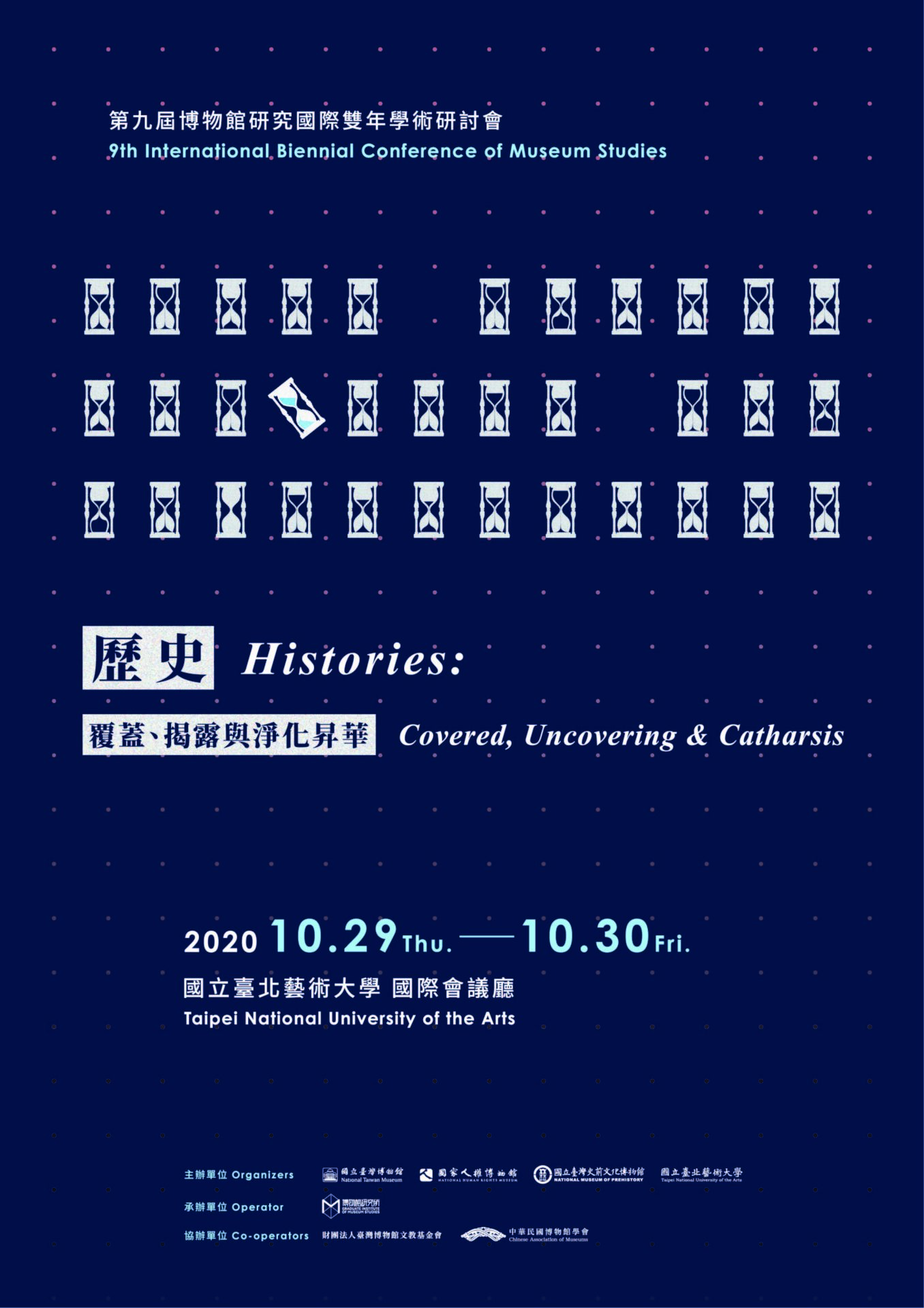 即日起至2020/04/20【第九屆博物館研究國際雙年學術研討會】摘要徵稿說明 國立臺北藝術大學、國立臺灣博物館、國家人權博物館及國立臺灣史前文化博物館共同合辦 On 三月 27, 2020 【第九屆博物館研究國際雙年學術研討會-歷史:覆蓋、揭露與淨化昇華】 摘要徵稿子題 1. 博物館對於自然與科學的歷史反思 2. 博物館對於政治與族群的歷史反思 3. 博物館對於生活與文化的歷史反思 4. 博物館對於文學與藝術的歷史反思 *投稿詳情與報名表請見:http://ibcms.tnua.edu.tw/2020/d1.html *聯絡方式:林小姐(02)28961000 # 5414 Share