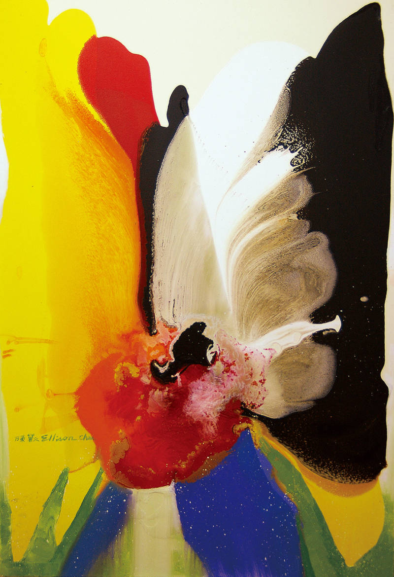 每幅創作均極具創造力與洶湧澎湃的生命力,在自然流暢的畫面中,揉合了中西畫風,且兼具所謂的「虛實平衡」、「浪漫唯美」,同時也蘊含著不可言喻濃厚的東方禪意。