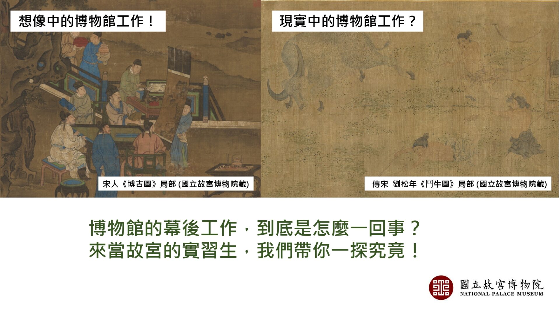 但這群「在幕後的人」到底做的是怎樣的工作呢? 有哪些不為人知的甘苦?快來當故宮的實習生,讓我們帶你一探究竟吧!
