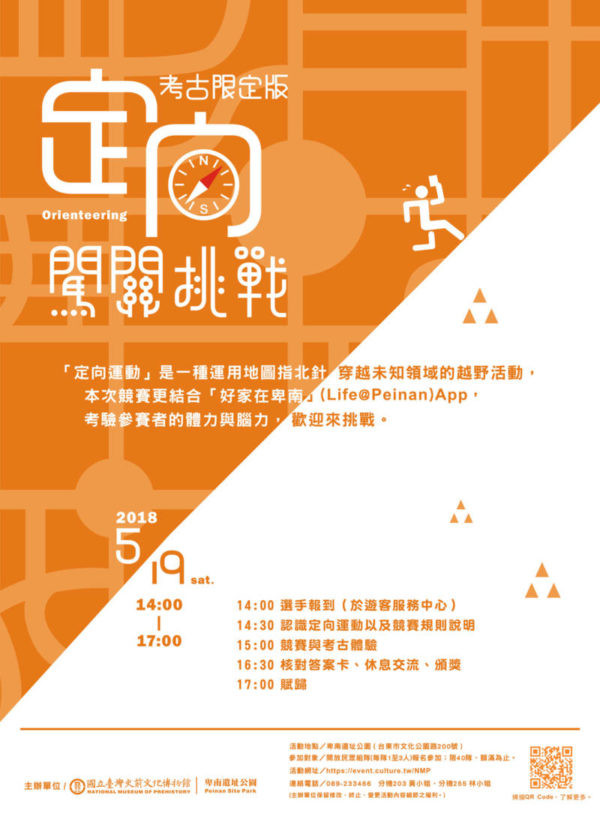 「定向運動」是一種運用地圖、指北針穿越未知領域的越野活動,本次競賽更結合「好家在卑南」(Life@Peinan)app應用程式,考驗參賽者的體力與腦力,歡迎來挑戰。