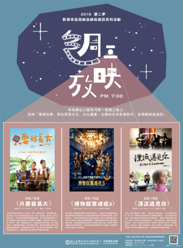 卑南遺址公園每月第一個週三晚上,放映「環境生態、原住民族文化、文化遺產」主題的近年影像新作,並規劃映後座談。
