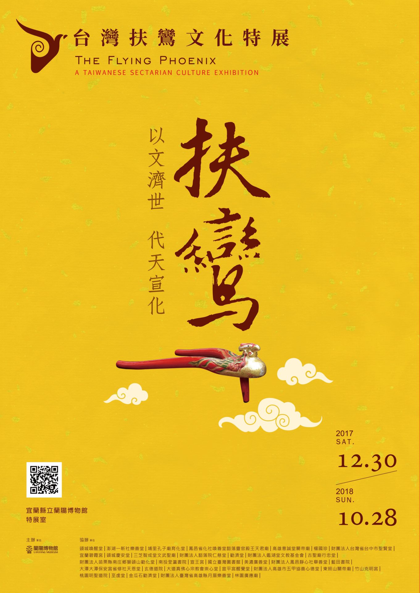蘭陽博物館在2017年12月30日起,展出的「台灣扶鸞文化特展」。此特展是國內博物館界,首次以「台灣扶鸞文化」做為策展主題的策展嘗試,受各方不少好評,特別決定將特展延展至2018年10月28日,希望能提供更多民眾機會,一窺「台灣扶鸞文化」─這個重視文字占卜、教育、吟詩及勸世教化意義的民間隱藏版的特殊信仰文化。