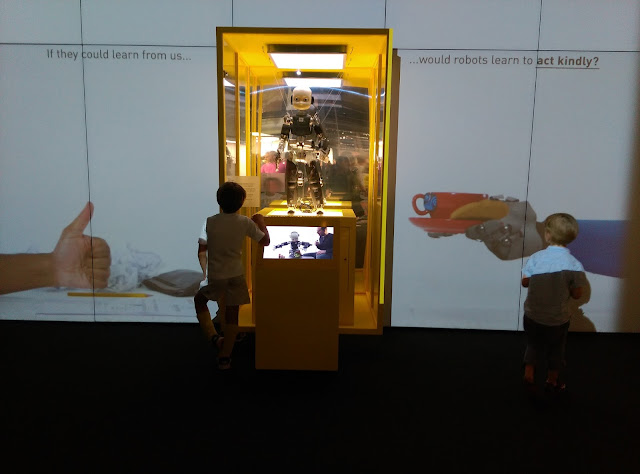本展區沒有太多的展品,僅展出這個19世紀的紡織機(圖3),來說明工業革命時代,引起的機械化革命,所造成的矛盾:人創造機器來取代人力的工作,但同時人在其中也成為工廠機械裝置的一部分。本展區沒有展示任何「機器人」,卻是最讓筆者深思的一區,是人來奴役機器?還是機器奴役人?當人被機器所制約,是否就是一個人類軀體的「機器人」呢?