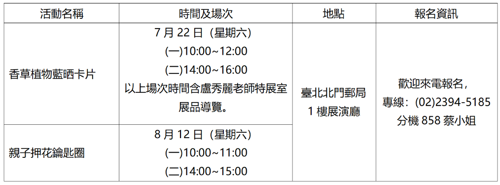 (二)免費手作教學活動:每場限額20名,國小低年級生須由家長陪同。