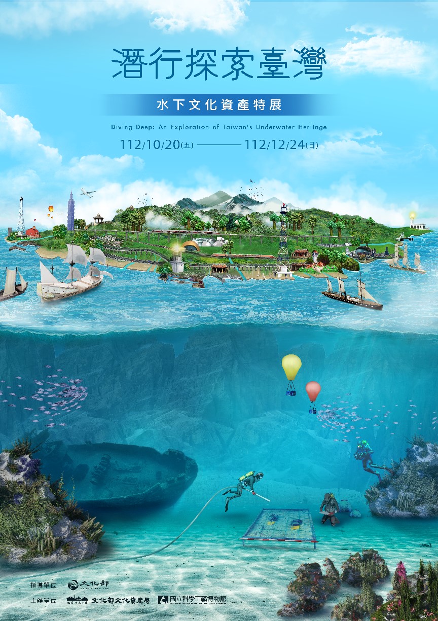 為彰顯海洋臺灣之文化意涵,宣揚水下文化資產之重要性,文化部文化資產局與國立科學工藝博物館攜手合辦《潛行探索臺灣-水下文化資產特展》,巡迴展首站在高雄國立科學工藝博物展出,接著前往花蓮與臺南巡迴展,最終站臺中場回到文資局所在地文化資產園區R08水下文資展示館。