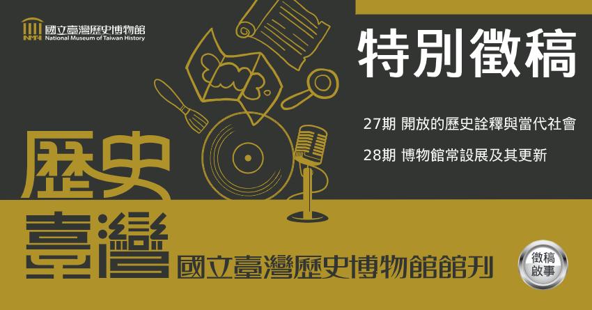 臺史博館刊《歷史臺灣》全年徵稿中!各種臺灣史、博物館學及文物蒐藏保存的研究成果都歡迎來稿,第27期、第28期另徵求以下主題稿件,徵稿說明及文章體例請見:https://www.nmth.gov.tw/archive?uid=173。