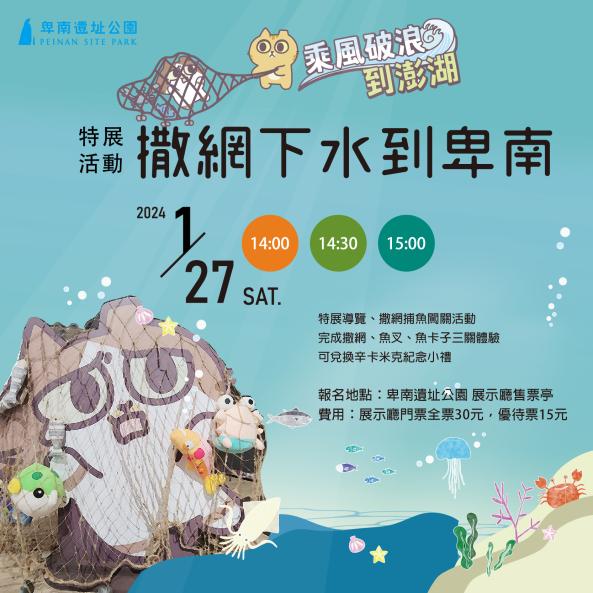 費用:展示廳門票費即可參加特展導覽、撒網捕魚闖關活動。