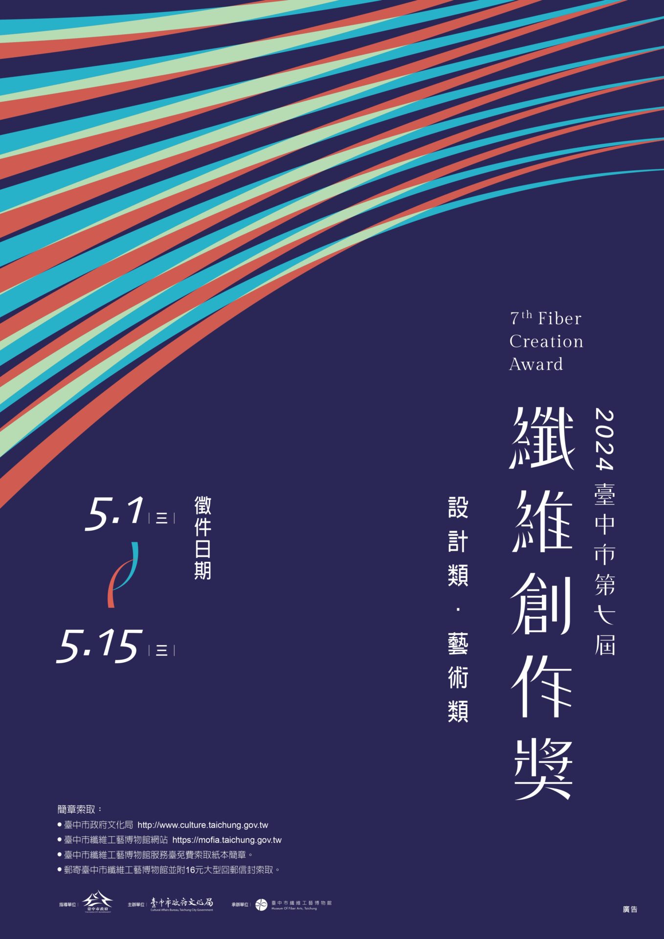 - 得獎作品將於臺中市纖維工藝博物館(以下簡稱纖博館)展出,並辦理頒獎典禮。