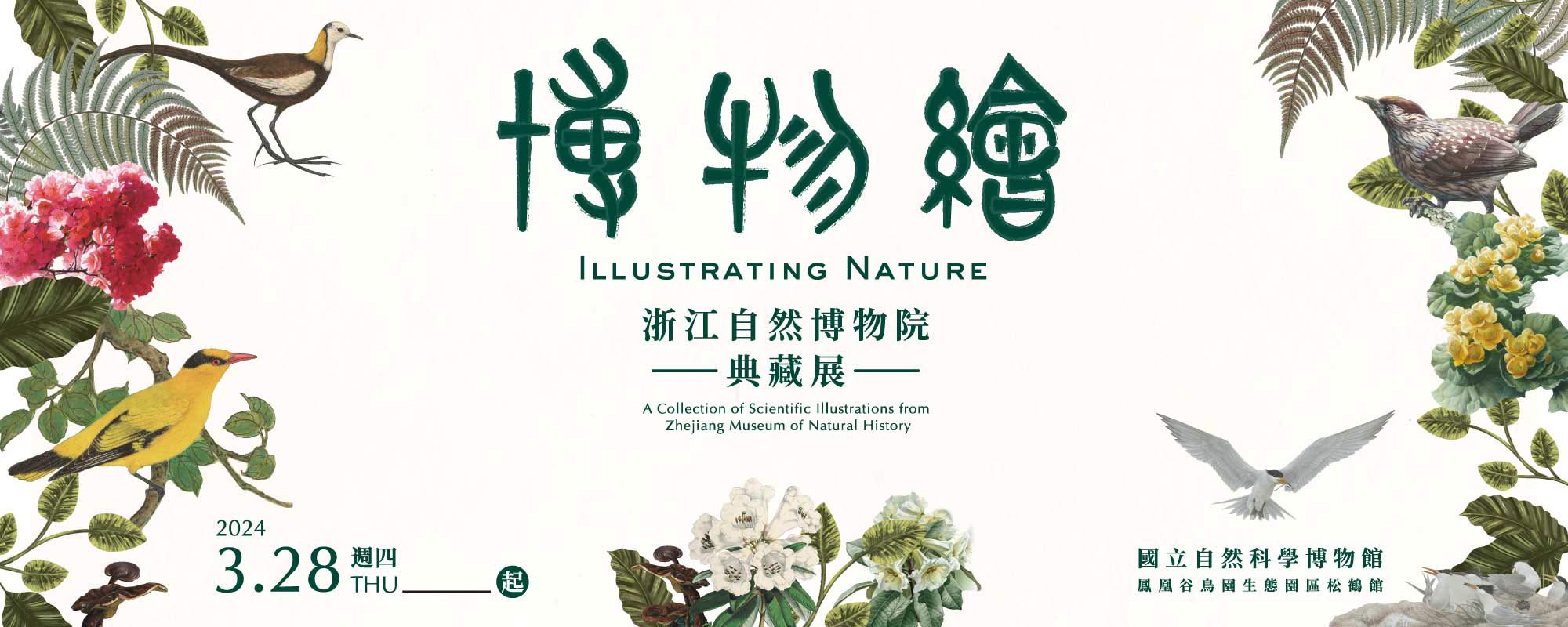 博物繪圖透過博物學家之科學的觀察、描繪與詮釋,結合美學的構圖呈現,長久以來,為國內外博物館傳遞生態訊息與美感的科普傳播重要視覺元素。 本特展主要展出浙江自然博物院館藏63組博物繪圖,特展主題聚焦鳥類及植物,呈現博物學家的自然觀察與手繪紀錄,也呼應鳳凰谷鳥園的自然生態教育角色。