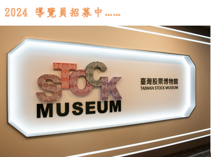 為提供大專院校在學學生職場實務學習機會,臺灣股票博物館自開幕營運以來,每年遴選各大學院校在學學生約30名,擔任導覽解說及接待服務工作,渠等表現深受各界肯定與好評。臺灣股票博物館本(113)年度導覽員招募活動,自即日起開始,歡迎本年9月升大學三、四年級或研究所ㄧ、二年級學生,需具英語導覽能力,且該學年度未安排企業實習或擔任交換學生者參加甄選,並進行為期3個月導覽解說技巧及接待禮儀等相關專業訓練。