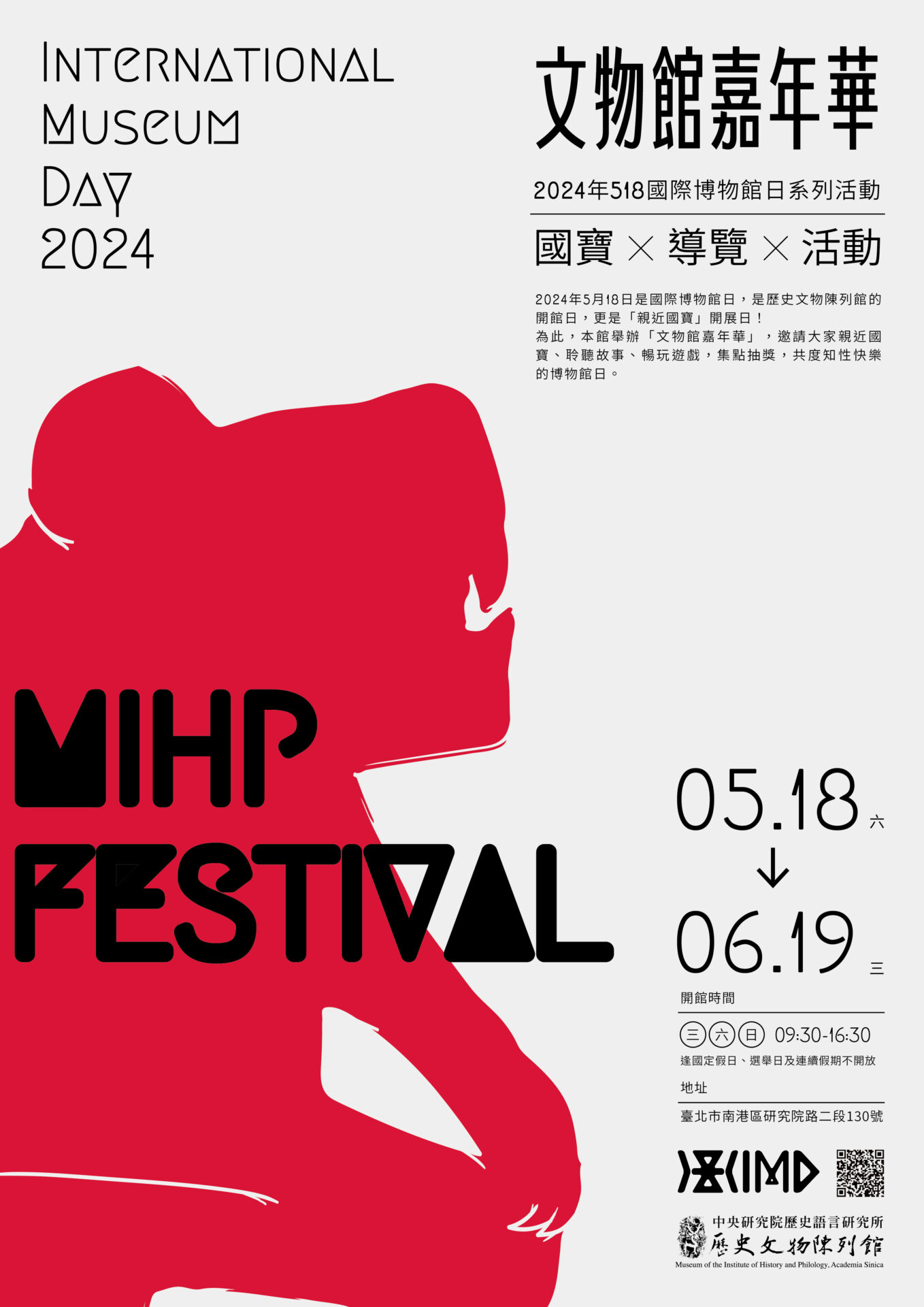 中央研究院歷史語言研究所歷史文物陳列館:2024/05/18-2024/06/19【文物館嘉年華-2024年518國際博物館日系列活動】 2024/05/18-2024/06/19 On 五月 15, 2024 「文物館嘉年華-2024年518國際博物館日系列活動」 活動日期:2024年5月18日(六)至6月19日(三) 活動地點:歷史文物陳列館 2024年5月18日是國際博物館日,是歷史文物陳列館的開館日,更是「親近國寶」開展日!為此,本館舉辦「文物館嘉年華」,邀請大家親近國寶、聆聽故事、暢玩遊戲,集點抽獎,共度知性快樂的博物館日。 活動網址:https://museum.sinica.edu.tw/events/219/ Share