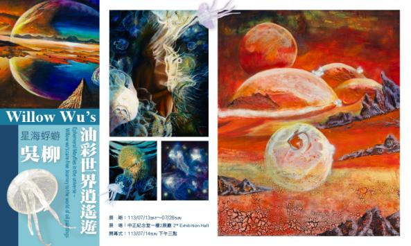 吳柳發覺水母具有空靈、透明、扭曲、重疊、多變、難以捉摸等特性,並以此來營造如幻似真的空靈神秘世界,探討與描繪女性內心各種情感的不同面向。更以水母空無、扭曲、變形,來隱喻人類文明進化的矛盾及人生的無常,進而創作宇宙時空之旅,思考時間與空間的問題,闡明及警示短暫的人類文明,面對浩瀚無垠的宇宙何等渺小,必須謙卑的真理。更以草書與水母狂放自由的特性相互呼應,融合東方水墨的意境,成為一連串創作的靈感來源。吳柳油彩創作從水母作為象徵符號切入,以水母的空靈、虛無、多變等多種特性,引喻人生百態,也試圖表達或闡述個人的人生觀、宇宙觀。