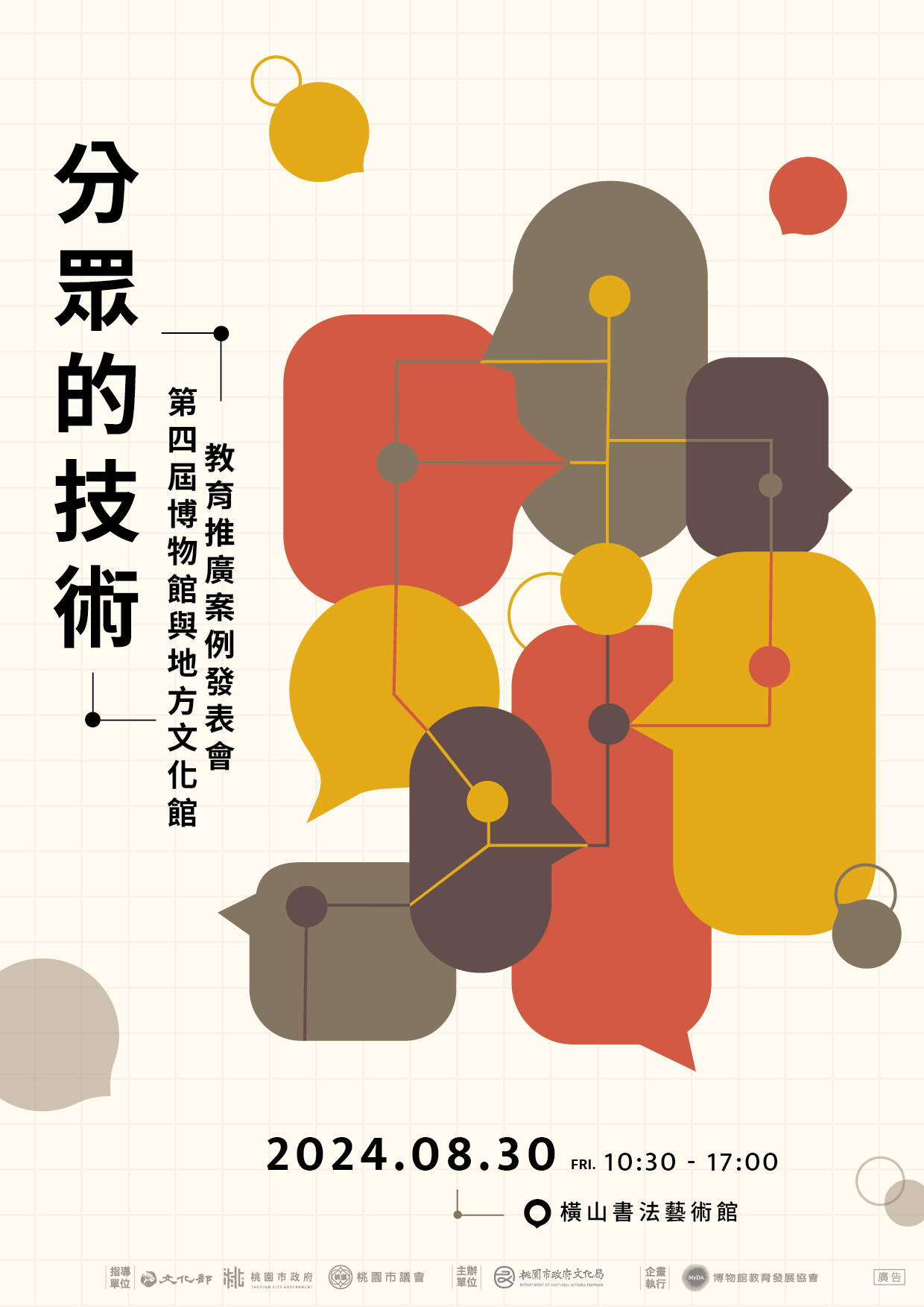 第4屆「博物館與地方文化館教育推廣案例發表會:分眾的技術」,將邀請各館所帶來豐富多元的案例,分享如何通過分眾技術,設計出符合各類觀眾需求的內容:包涵兒童、高齡者、智青、視障者、教師等群體,提供更細緻化的觀眾體驗,開展出多樣化且包容的博物館進程