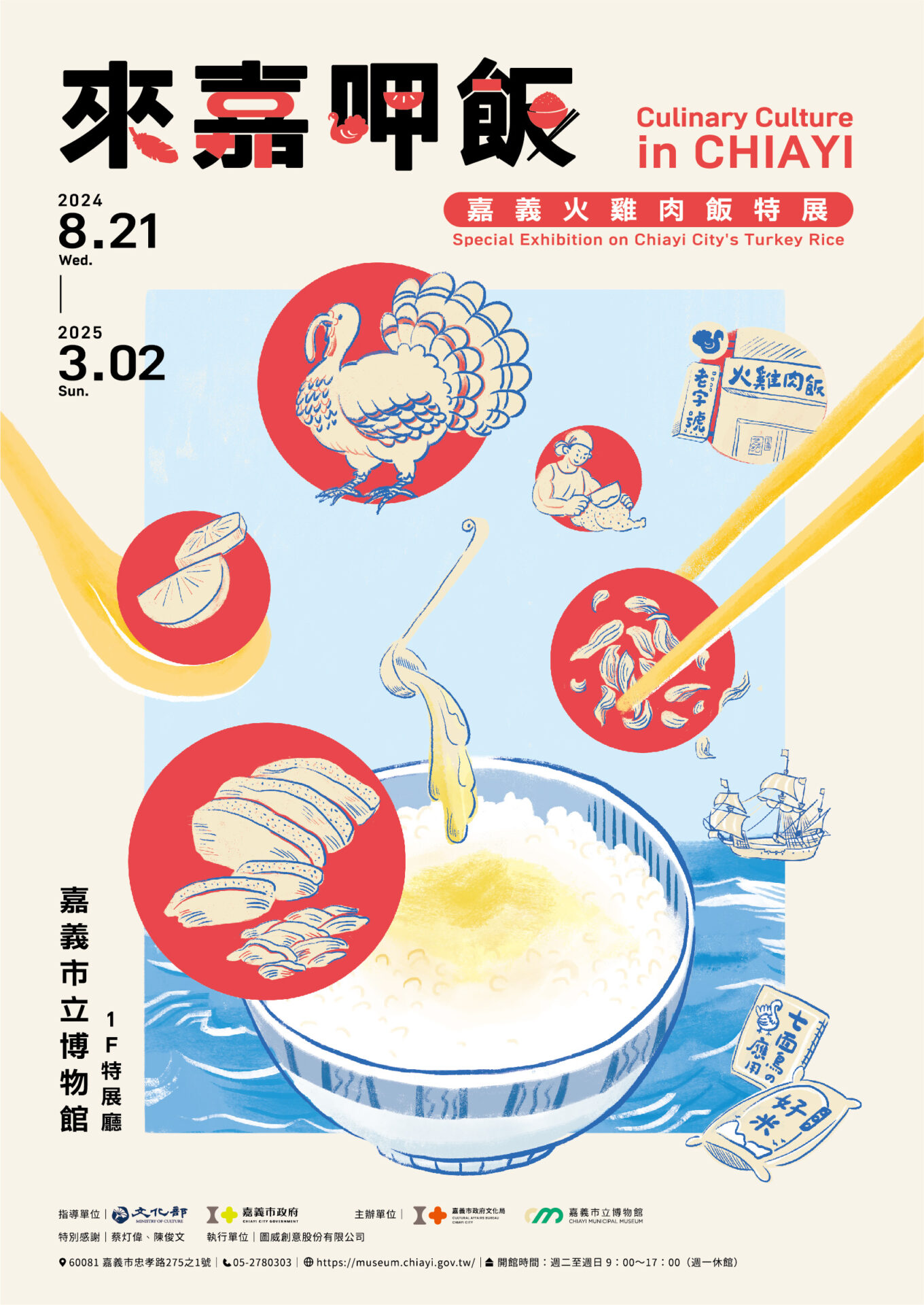 嘉義火雞肉飯是以火雞肉為主角,米飯當底,再淋上特調醬汁,搭配油蔥、黃醃蘿蔔等配料,成為廣受喜愛的平價美食。雖然價格親民,但細節可不馬虎,從挑選火雞肉到各樣配菜,店家都有自己的獨門配方。每位嘉義人也幾乎都有一套自己的「好吃」標準和口袋名單。