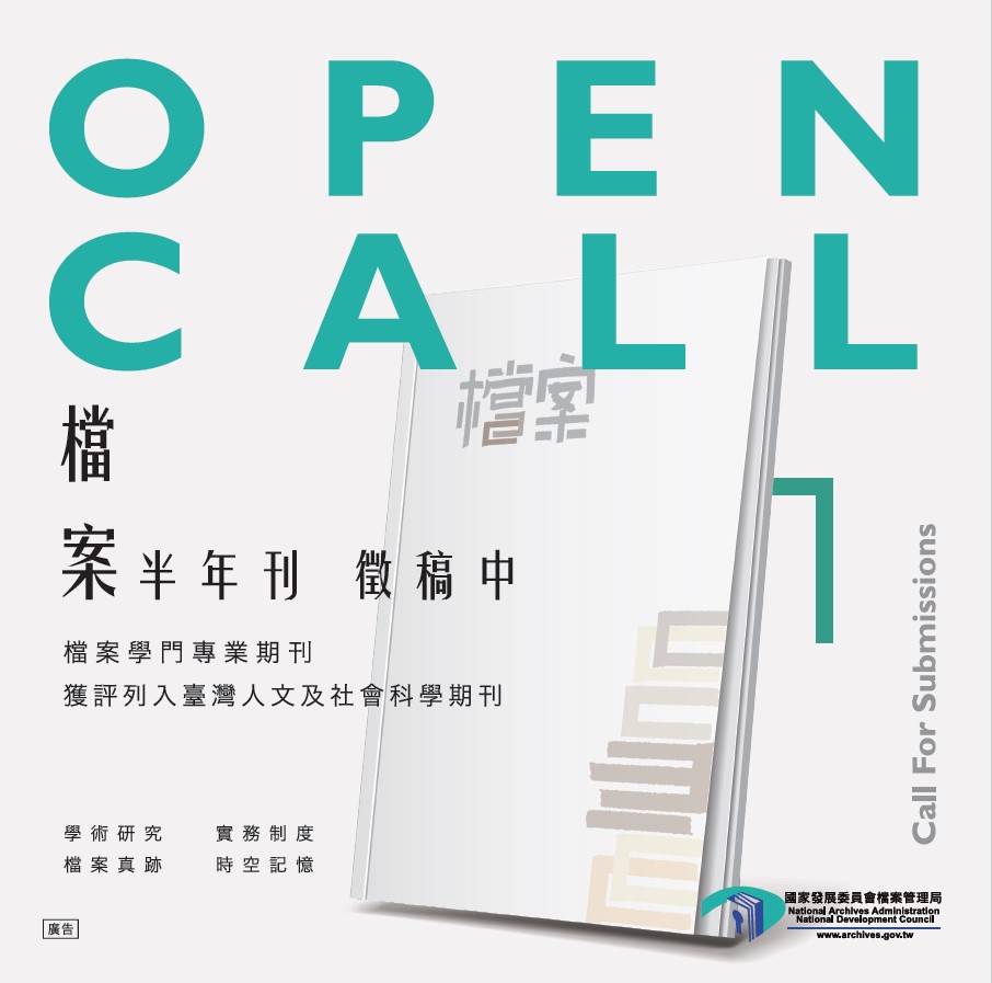 一、「檔案」半年刊為一分享檔案管理學術研究與實務經驗及知識管理的園地,並獲評為臺灣人文及社會科學收錄期刊,全年徵稿,歡迎大家踴躍投稿,徵稿範圍如下: