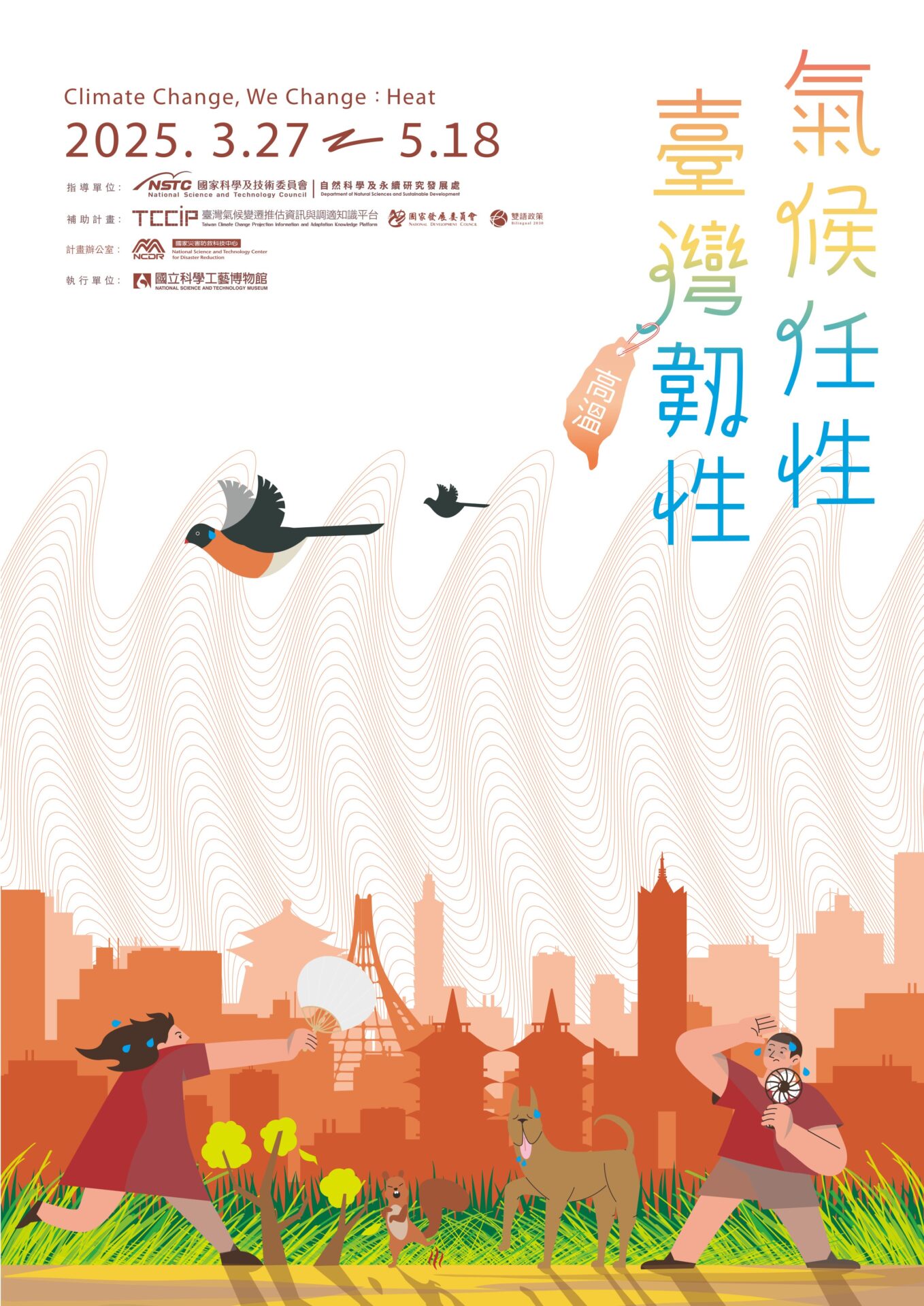 全球暖化下臺灣的氣溫持續上升,平地超過36°C高溫日數也持續增加!國立科學工藝博物館(以下稱科工館)參與行政院國家科學及技術委員會(簡稱國科會)推動之「臺灣氣候變遷推估資訊與調適知識平台(簡稱TCCIP)」計畫,與國科會自然處、TCCIP計畫辦公室國家災害防救科技中心共同舉辦「氣候任性.臺灣韌性—高溫篇」特展。國科會之TCCIP科學團隊,以長期建構專屬臺灣在地化的氣候變遷資料庫為基礎,透過深入淺出的方式,呈現未來我們可能要面對的高溫環境,以及臺灣因應氣候條件改變所發展出來的調適策略,一起學習與極端天氣共存的方法,防患於未然。展示內容涵括三個面向,有「與氣候共存」、「高溫的衝擊:從全球到臺灣」、臺灣各地因應都市熱島效應以及畜牧業面對高溫所提出的「調適與策略」,調適與策略的展示內容,特別邀請到TCCIP計畫團隊的國立成功大學建築與氣候研究室(BCLab)團隊與農業部畜產試驗所團隊分享科學成果如何實踐於調適。展期自2025年3月27日(週四)至2025年5月18日(週日),於科工館地下一樓「氣候變遷」廳展出。展期結束後,本特展以環景技術將特展轉換為實境的線上展,由國家發展委員會融入雙語元素計畫支持,提供雙語語音的線上導覽。