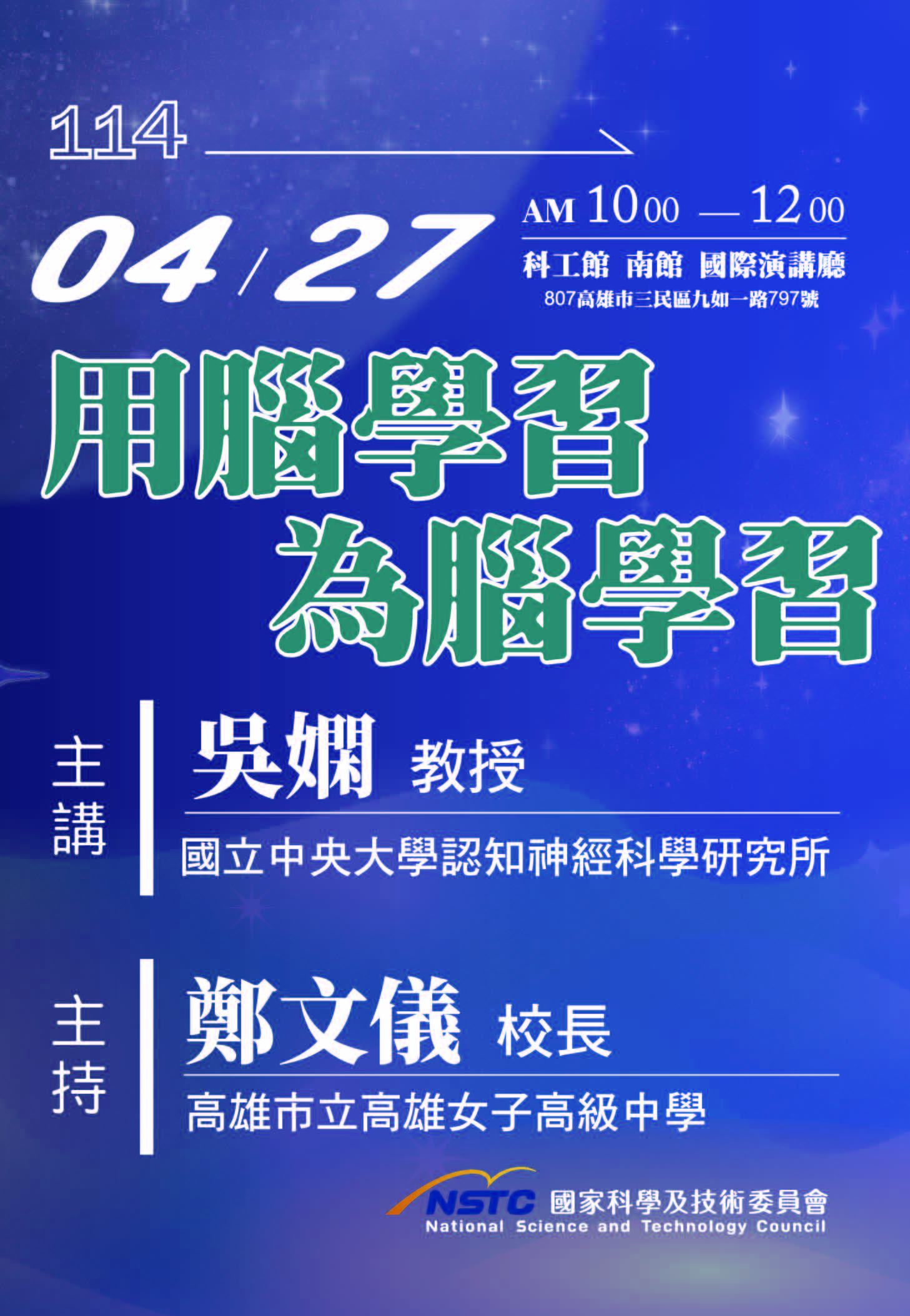 人腦的運作方式充滿了智慧與效率,它能夠快速處理複雜的信息,進行高效的學習和適應。因此,科學家們希望通過研究和模擬這些神經機制,創造出更具智能、更能適應環境的人工系統。由國科會連續補助第22 屆的週日閱讀科學大師講座,於114年04月27日上午10 時,邀請國立中央大學認知神經科學研究所的吳嫻教授,主講「用腦學習 為腦學習」,揭開我們人體中最重要的器官。