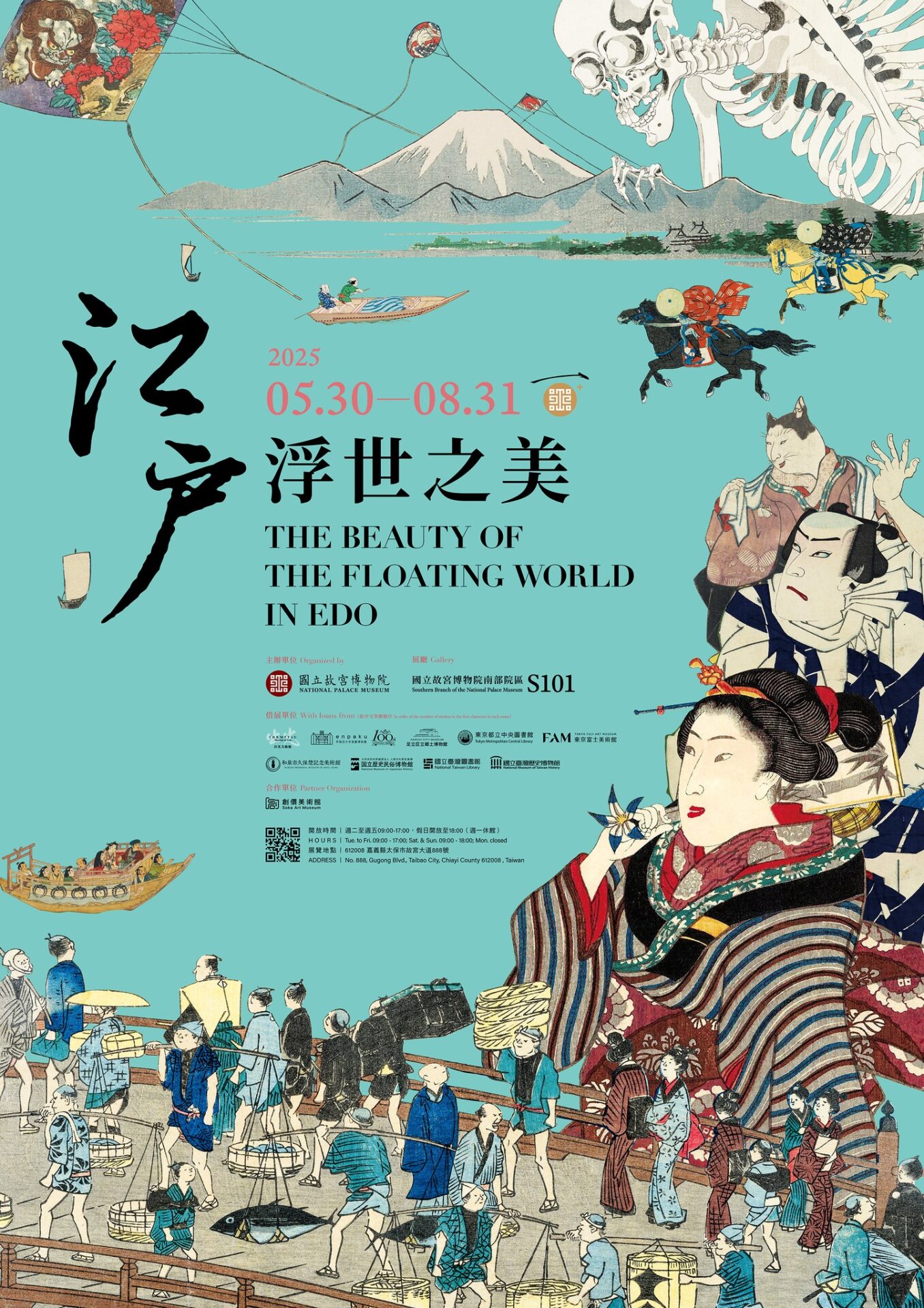 為了呈現上述的江戶浮世之美,本展蒐羅海內外珍貴典藏,涵蓋了屏風、手卷、版畫、繪本等多種形制,規劃四個單元,展演江戶城市生活的樂趣與魅力,分別為: 「川流豐華」、「城市時光」、「旅遊樂趣」和「跨界交流」。