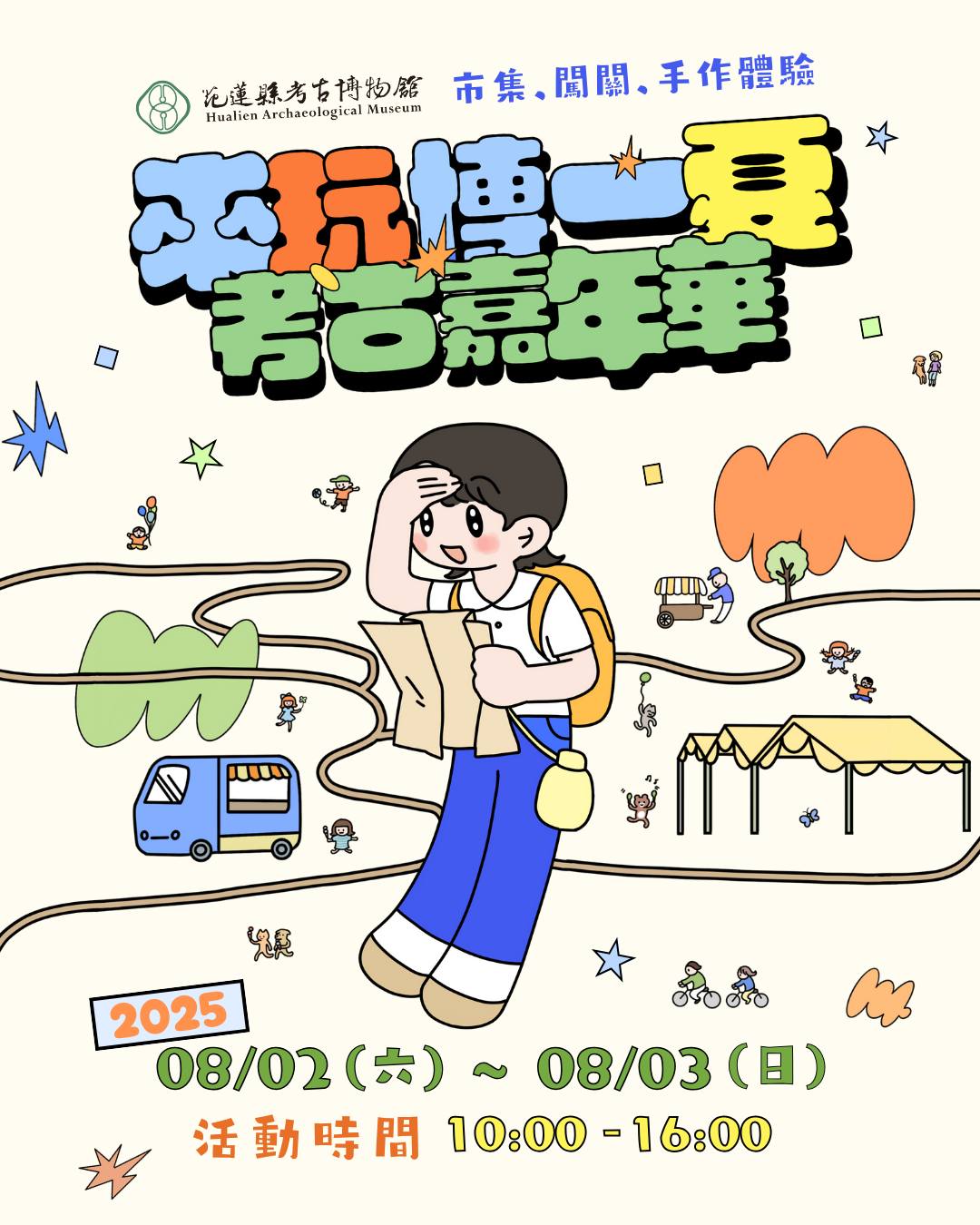 活動主打趣味挑戰與親子互動體驗,內容包括三項限量手作:「玉見你真好」輕黏土吊飾、「考古挖挖挖」模擬發掘體驗,以及「古物幻化」滴膠擺飾;另設有三項知識闖關挑戰,參與者完成任務可兌換精美小禮。同時現場也將舉辦以「食」為主題的「流動食光」市集,邀請民眾一同感受考古與生活交融的夏日樂趣。