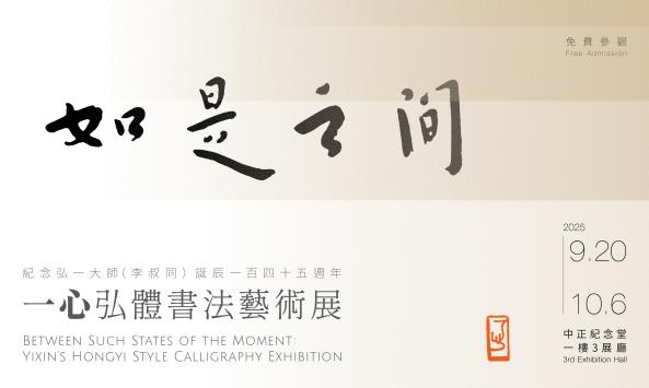 此次舉辦的「如是之間・一心弘體書法藝術展」,將完整呈現一心師多年來對弘體書法的研習與創作。展品涵蓋佛經經文、祖師法語以及經典詩詞,如〈金剛經〉句、〈藥師經〉19幅、虛雲老和尚詩文、〈道德經〉摘抄等,其中〈閩南佛法四言聯〉,是一心曾在泉州開元寺的弘一法師紀念館見聞大師真跡,深受觸動後的背臨之作,體現其堅固的道念與信心,在字義上,「閩南」與臺灣亦有呼應之處,期待與觀者產生更多共鳴。