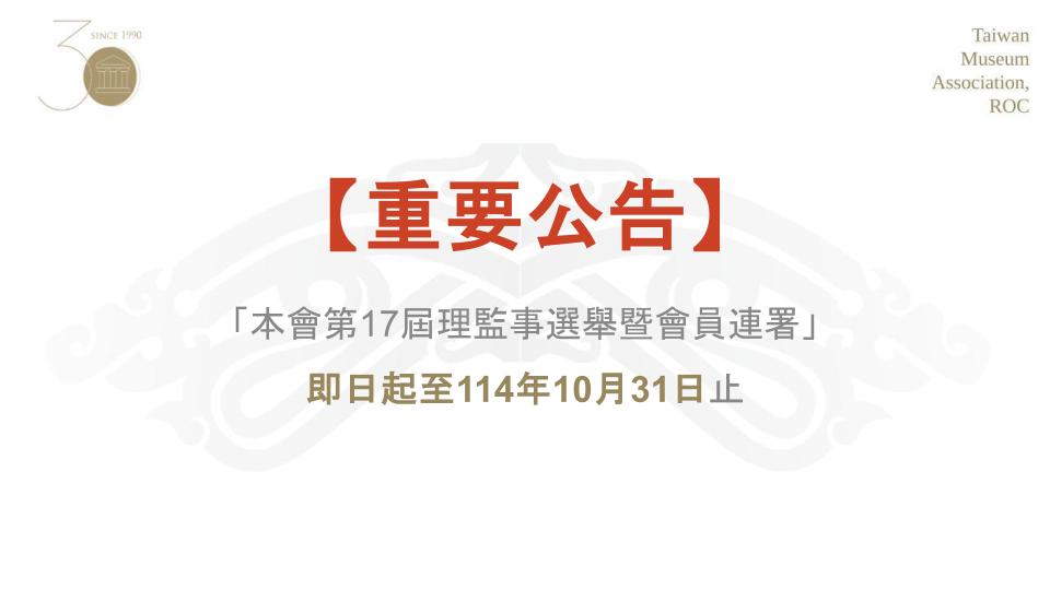 即日起開放第17屆理事、監事候選人連署提名,詳請參見附件「提名連署推薦書」及「理事暨監事選舉辦法」。