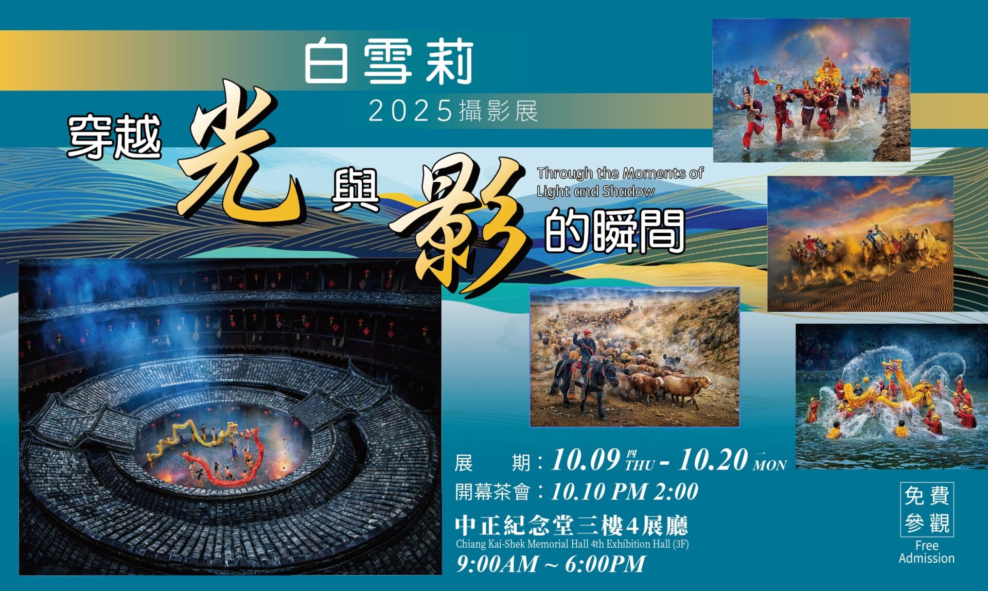 本次展覽以《穿越光與影的瞬間》為主題,呈現白雪莉多年來在臺灣、日本、中國及世界各地的攝影作品。她透過鏡頭,捕捉人文、自然和藝術風景中的每一個瞬間,展現獨特的視角與深刻的觀察。展覽內容分為六大系列:「人文」、「生態」、「風景」、「花卉」、「黑白」與「藝術創作」,每一幅作品都反映了光影的變化和生命的細膩表達,呈現了不同主題下的情感與思考。
