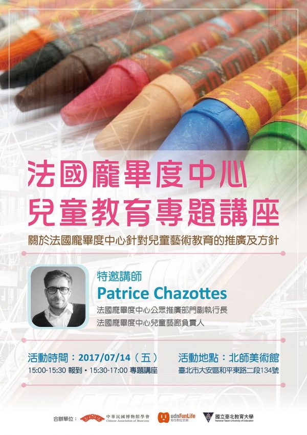本次十分榮幸可以邀請到Patrice Chazottes來分享他對於兒童藝術教育的看法以及心得,共同切磋並交流經驗!名額有限,報名從速!
