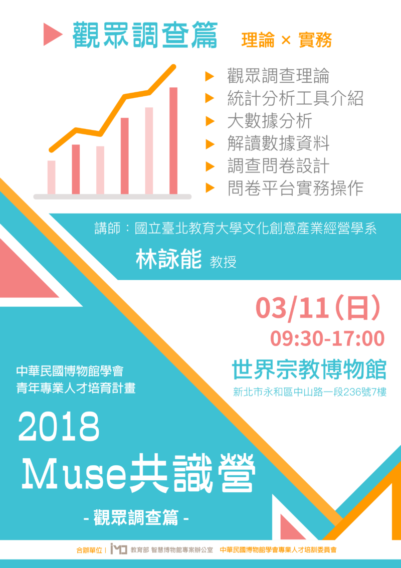 感謝各位熱烈地報名,本次由中華民國博物館學會、教育部智慧博物館專辦主辦的「2018Muse共識營-觀眾調查篇-」活動之正取學員條列如下。期待與各位當天活動現場見喔!