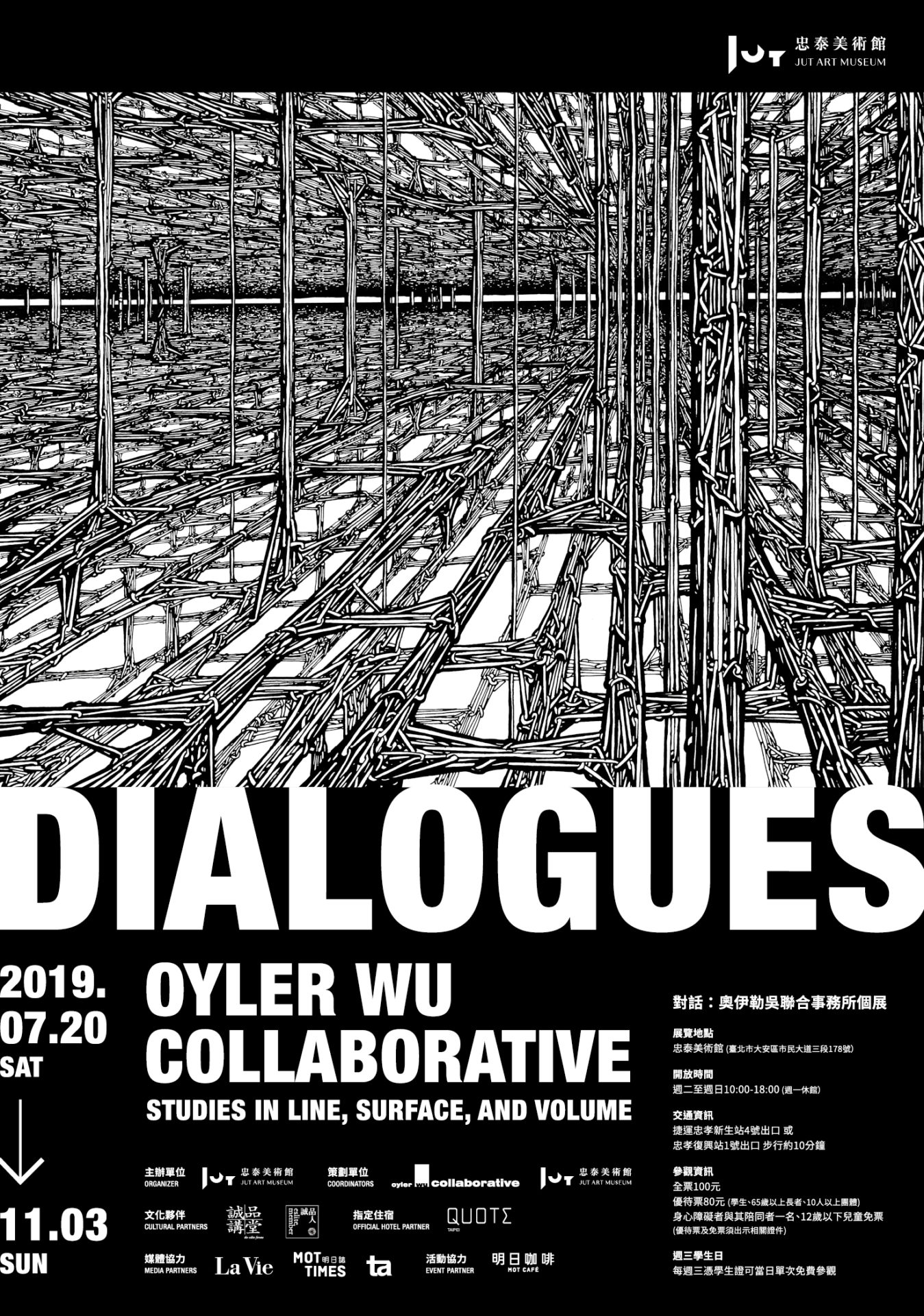 Oyler Wu Collaborative(奧伊勒吳聯合事務所)由Dwayne Oyler(德韋恩.奧伊勒)與Jenny Wu(吳嘉華)於2004年所創立,位於美國洛杉磯,以專注於密切結合製程、材料、研究與設計實驗,挑戰建築環境的普遍觀點而聞名。他們長期以來研究「線、面、體」的逐步構成,訴說其不變的初衷及經歷的設計軌跡:從手繪圖到精緻珠寶、大型基礎建設案到全手工藝品,呈現於他們各種不同尺度的創作之中。《DIALOGUES: Oyler Wu Collaborative》展覽旨在說明事務所的創作模式,強調其工作過程裡不拘規模大小,不論何種使用型態,都能依其特質,解決問題並提出創新作品。