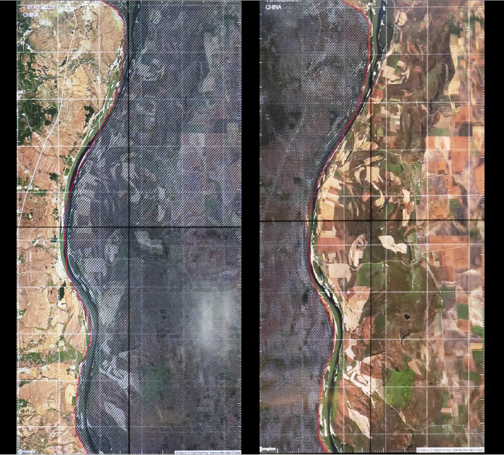 〈邊界漫遊〉作品中,藝術家聚焦在這由各種原因形成的邊界路徑,認為邊界可以是一個政權範圍內的行政分界線,或是依附於地理環境特徵,以牆或運河所產生的分隔。邊界的產生,除了地理環境,有時更多來自政治因素以及歷史背景,例如冷戰時期,柏林圍牆分隔了東德、西德;而北緯38度線則分隔了北韓及南韓。邊界分隔的不僅是物質上不同,更多是心靈的差異,甚至相異的風俗民情就能界定出兩個的不同區域。因此,視覺上,藝術家透過演算法在衛星地圖上進行點對點的移動,跨越山巒、海洋,跳躍在洲及島,藉由作品試圖提供觀眾另一個觀看核心(國家政治中心)的方法,引導觀眾反思邊界在政治上所映射出的全然不同關係,嘗試重新定義觀者凝視的方向。