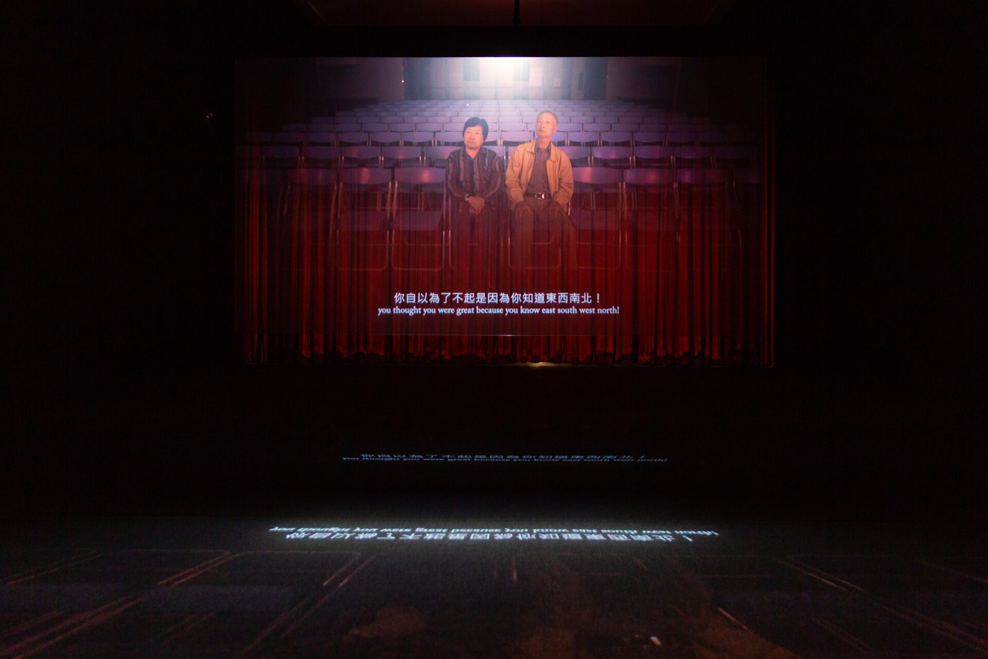展區以自由探索為樂趣,不標示過多指示牌。就連志工有時也困惑展區裡的公園座椅觀眾可否坐。因為黃華成就是要你困惑與無所適從,張世倫依照藝術家的個性佈置了一個和觀眾充滿對話樂趣的展間。當年的〈先知〉腳本,舞台上紅色布幕非常重要,觀眾坐在舞台,戲就莫名其妙開始,兩個演員坐在觀眾席對話,只看到紅色布幕緩緩移動,然後燈光漸暗。重新測量黃華成的概念至今仍然非常前衛,以蘇育賢2017年重拍的影片再現演出,將對話打在透明的玻璃上,後面可以看到實體的紅色布幕,很多人不知道後面還有東西。如果有人好奇一摸,紅色布幕一打開就別有洞天。「這同時是一個隱喻,隱喻過去藝術史談黃華成結束在60年代,也是隱喻過去藝術史對他的認知只到此,但是布幕後的設計是他將過去60年無法完成的概念延續在70年代書刊的設計上,我認為是一樣重要的創作,他的設計早就深植在閱讀人心中,這塊很重要的設計卻是委身在60年代的布幕後面,你如果夠細心就會看到。」