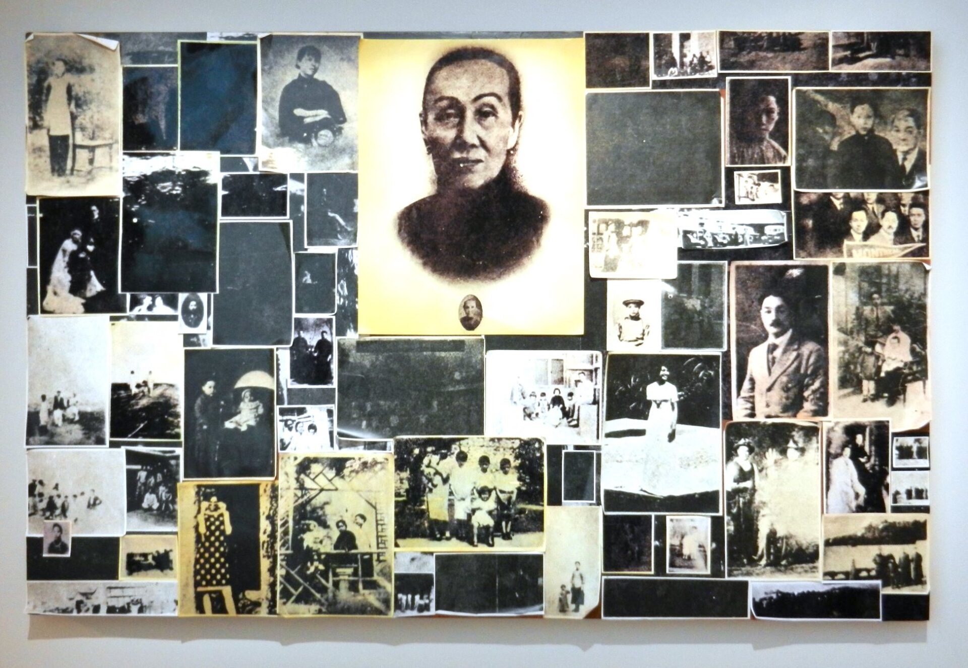 以僅有的資料重現作品,也考驗著技術面的細緻。以「黃郭蘇展」的〈紀念母親〉為例,唯一可以掌握的是當年刊在設計家雜誌的一張全頁照片,作品用很多照片拼貼在一個畫框內,張世倫工作團隊把每個單位個別抽離出來,考量彼此大小的關係是什麼;圖像有的是家族照片、也有雜誌剪下或別人給的照片,各自的基底材質不一樣,有相片、印刷紙、報紙,要把不同區塊的基底材質用不用的方式輸出再拼貼,而且不能貼工整。「他當年就是要打破你去畫廊看一幅畫,結果是照片,在當年不是很多人認可攝影是藝術的年代,貼照片就算了,還是蒐集來的印刷品。」最後的問題是當年雜誌刊出時黑掉的部分,究竟該用類似老照片代替還是空在那裡?「最後我們決定讓他黑掉,代表我們重新測量黃華成時代意義的盲點,盲點和暗角不需要掩飾。我覺得有時候告訴別人我所做的測量是很精準,其實並不恰當,尤其是檔案式的展覽,把檔案視為唯一的權威其實滿危險。」
