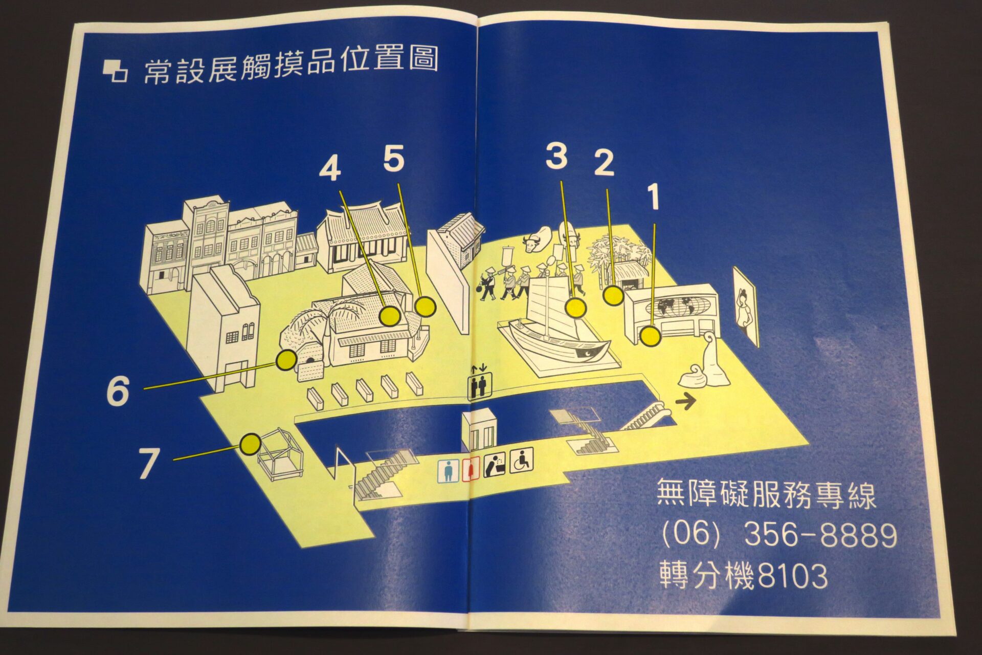 更新後的常設展設置了7處觸摸品區,將文物以3D立體方式呈現,分別為(1)鐵剪刀(壁鎖)、(2)公廨祭祀品:豬頭骨與檳榔、(3)李勝興米駝、(4)南無警察大菩薩海報、(5)排灣族原住民女子服飾、(6)警報器、(7)麵粉袋做成的衣褲。此7處觸摸品區除了中文與英文的解說內容,還在解說板上製作盲人可閱讀的點字,以多元方式滿足不同觀眾的參觀需求,強化並創造博物館的學習平權與知識平權,讓不同族群都能夠了解文物的特色。
