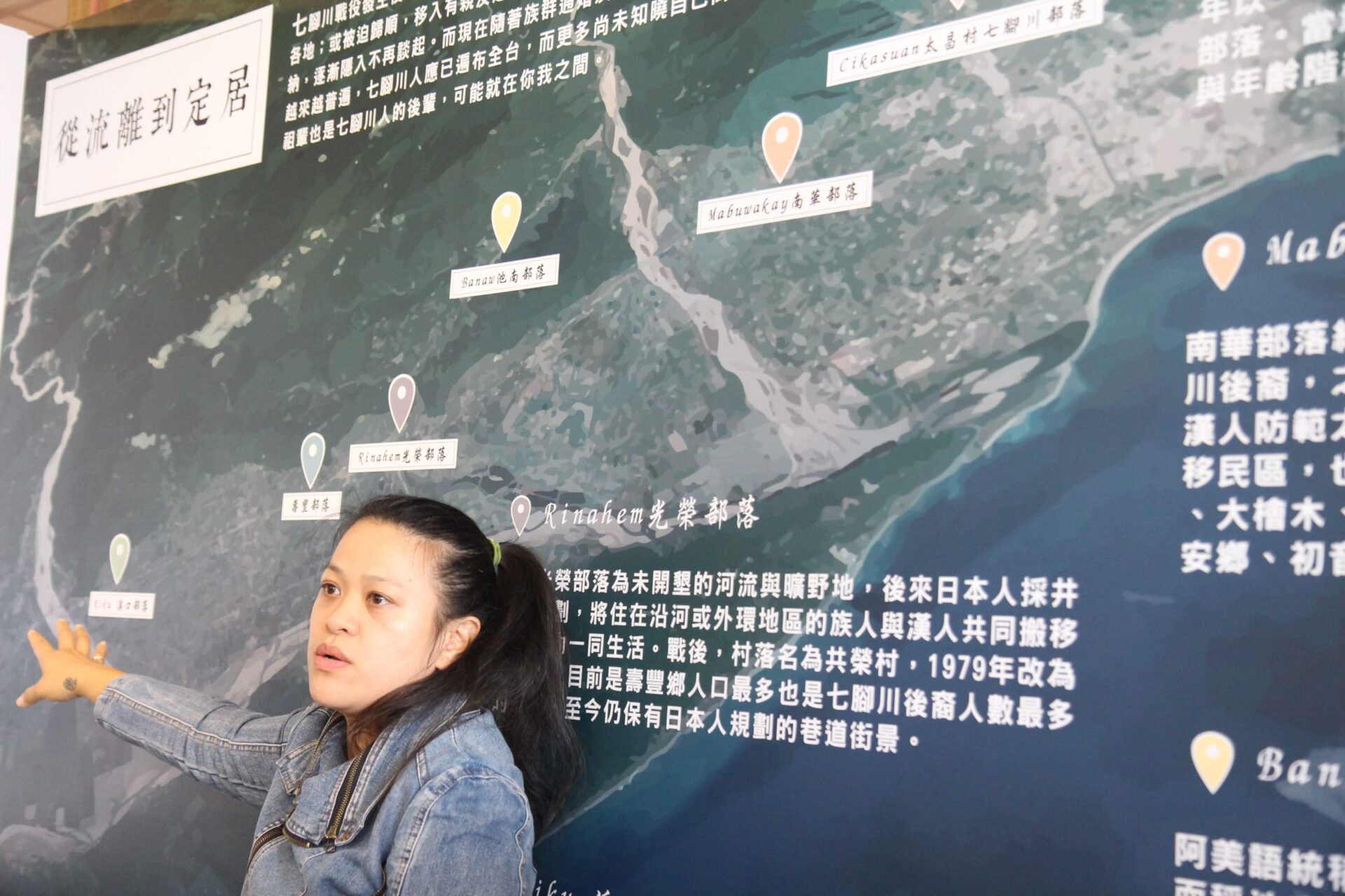 七腳川策展團隊的李玟慧,則是在2008年訪談過程中意外發現自己就是七腳川後裔,她不斷追溯七腳川後裔的族譜調查,為族人建立起強大的系譜。2018年相隔十年後,壽豐館以「歸途」為主題,從悲壯的戰役,走向現今部落文化與當代的連結共生。李玟慧和後來策畫110周年特展的駐館員曾以文,以充滿自信的亮麗色彩,一起解說與部落結合的展覽,看七腳川後裔如何從追溯歷史去認識自己的出身,找到回家的路。