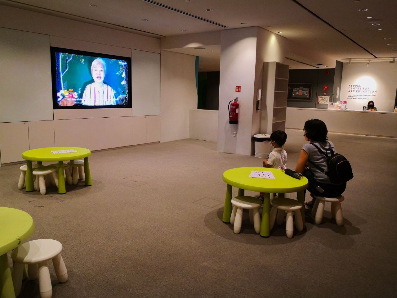 防疫閉館期間,受到親子觀眾喜愛的〈藝術中的故事〉系列活動無法在展廳進行,於是成為首波線上化的教育活動內容。館方邀請說故事團隊在教育活動現場錄製影片,讓長期參與本活動的家庭能不間斷學習,更能跨國推播此教育資源,進而認識新加坡在地文化。目前NGS在有限度下開放參觀,因疫情影響仍無法群聚,選擇在固定空間輪播影片,讓前來參觀的家庭觀眾能聆聽畫作故事。