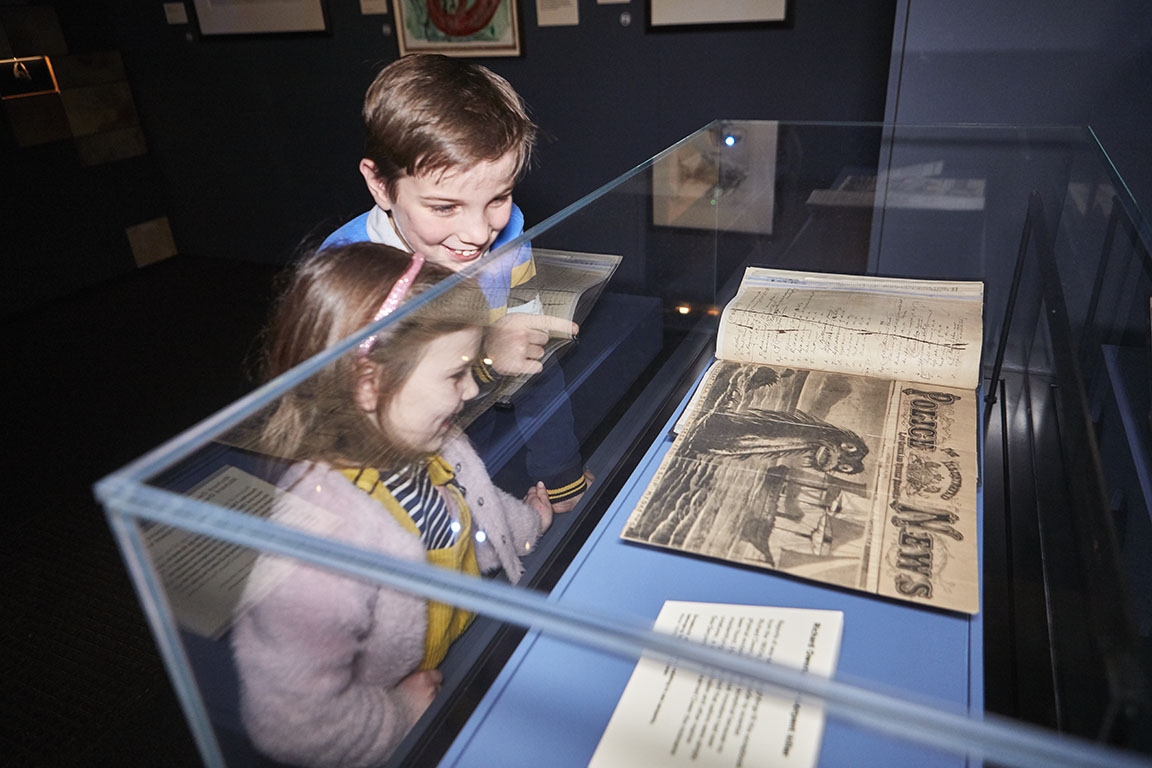 如此對獨角獸的堅信,亦可見於同展間、一度被視為獨角獸角,卻是18世紀前期出土的史前哺乳動物標本化石。在JK羅琳筆下的魔法世界中,獨角獸同樣高貴受敬仰,其獸角、毛髮和血液都有神奇的屬性。一旁展櫃同時展出《哈利波特》中榮恩、馬份和路平教授所使用的獨角獸毛魔杖,令人霎時分不清真假世界。如此巧妙地將古今傳說和小說中的魔幻世界相結合,乃策展團隊藉小說所發揮的說故事之力。