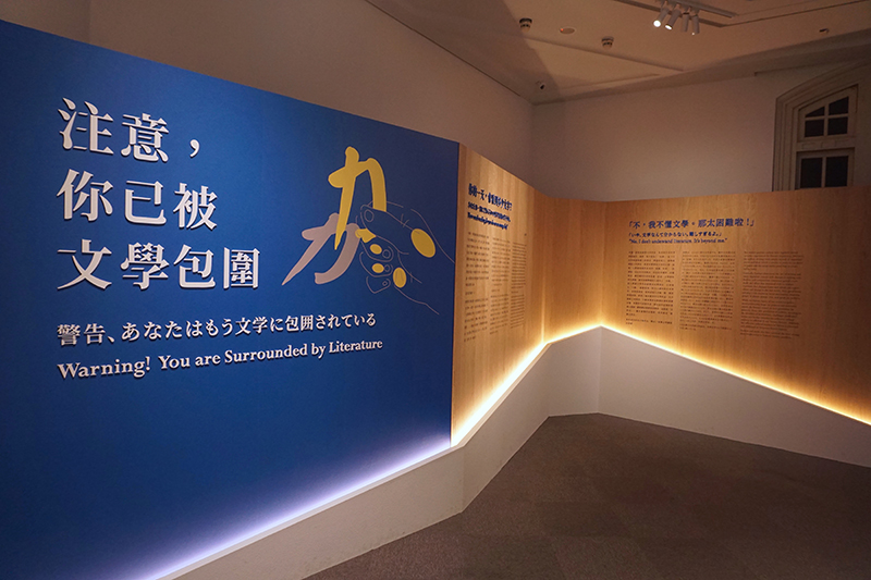 相較起舊展,此次的新展覽對於作品文本、情境展示的成分比例明顯下降,觀者可以發現,展覽腳本的文字跳入台灣文學的傳統史學論述框架內,力求為觀者辯證出一條清晰的歷史軸線。然而,有趣的是,不同於力求客觀、公正的傳統歷史書寫,展覽腳本在博物館服務大眾的公共空間基礎上,納入了「大眾」這群想像中的讀者,因而出現了平易近人、具說書人氣味的敘事腔:「注意,你已被文學包圍」、「你的一天,會看到多少文字?」、「不,我不懂文學。那太困難啦!」。