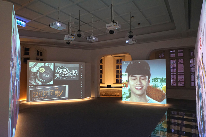 從「文字」本身紀錄性質的社會功用,再到敘述者所謂「遊戲」的文學形式和技巧,最後是「行動」,這是一個新的嘗試,去除博物館敘事權威,訴說的姿態彷彿一雙親人的友誼之手。與腳本敘事相對應的展示為四方環繞的影像,廣告、招牌、音樂、社運標語⋯⋯相互拼貼指涉,充滿影像詩的趣味,再次呼應「被文學包圍」的主題,並以此為破口,領觀者步入台灣文學的世界。