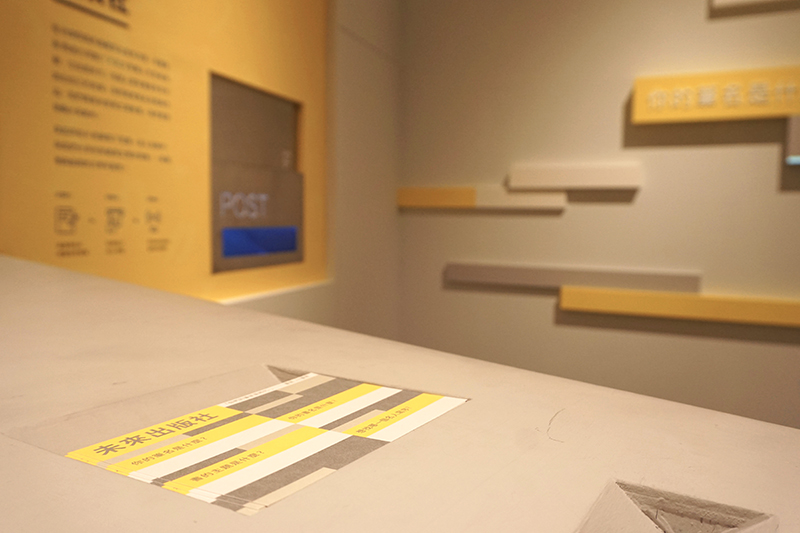 我們需要怎樣的文學力?從博物館展覽文本思考台灣文學。圖為互動裝置「未來出版社」,可將你的書寫文字掃描到牆上的螢幕。(劉庭妤 攝影)