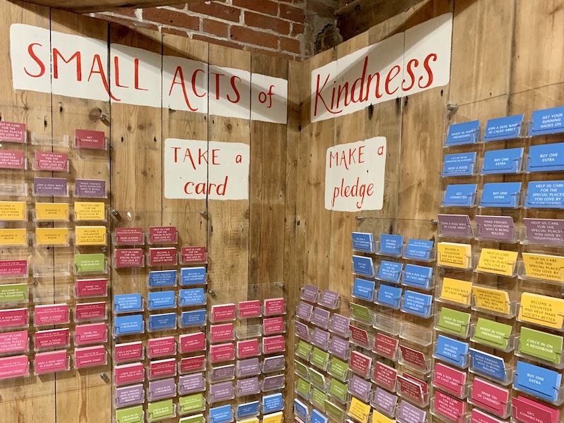 不同於一般光彩亮麗的莊園文物展示,庫爾克莊園強調呈現哈波家族的生活原貌,無論是建築本體或是內部空間,皆保留1985年英國國民信託接管之前主人翁的生活足跡。在特展入口處的牆上擺放寫著各種小語的互動小卡,鼓勵觀眾為生活做出小小的善舉,希望藉由展覽帶起善的循環、啟發關心身邊人事物的意識。此設計的靈感來自「孤立男爵」的傳說,以及莊園內人物的生命故事。