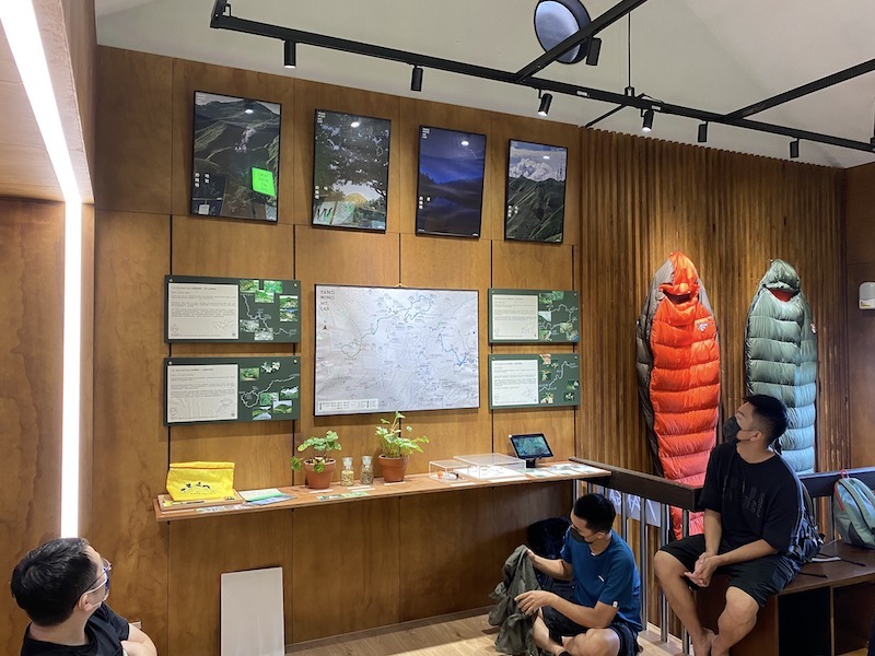 曾經去過幾個山屋,多數座落於海拔2000公尺以上的高山,往往需要走上好幾公里的路才能抵達。在這樣的山屋裡,只求一杯熱水、一塊睡覺的空地、一片遮風避雨的屋頂,便心滿意足。而陽明實驗山屋,彷彿將高山上提供溫飽功能的山屋移至低海拔的陽明山上,不只滿足長途跋涉旅人的基本生理需求,更加上「實驗」二字,試圖將國家公園品牌化,以實驗性精神設計一系列與專家合作的展覽活動,輔以品牌識別圖像、空間色彩、登山用具等相關周邊開發,讓鮮少爬山的都市人初嚐山中生活,凝聚對陽明山的喜好及認同,向「山」這座資源無窮的博物館謙卑學習。